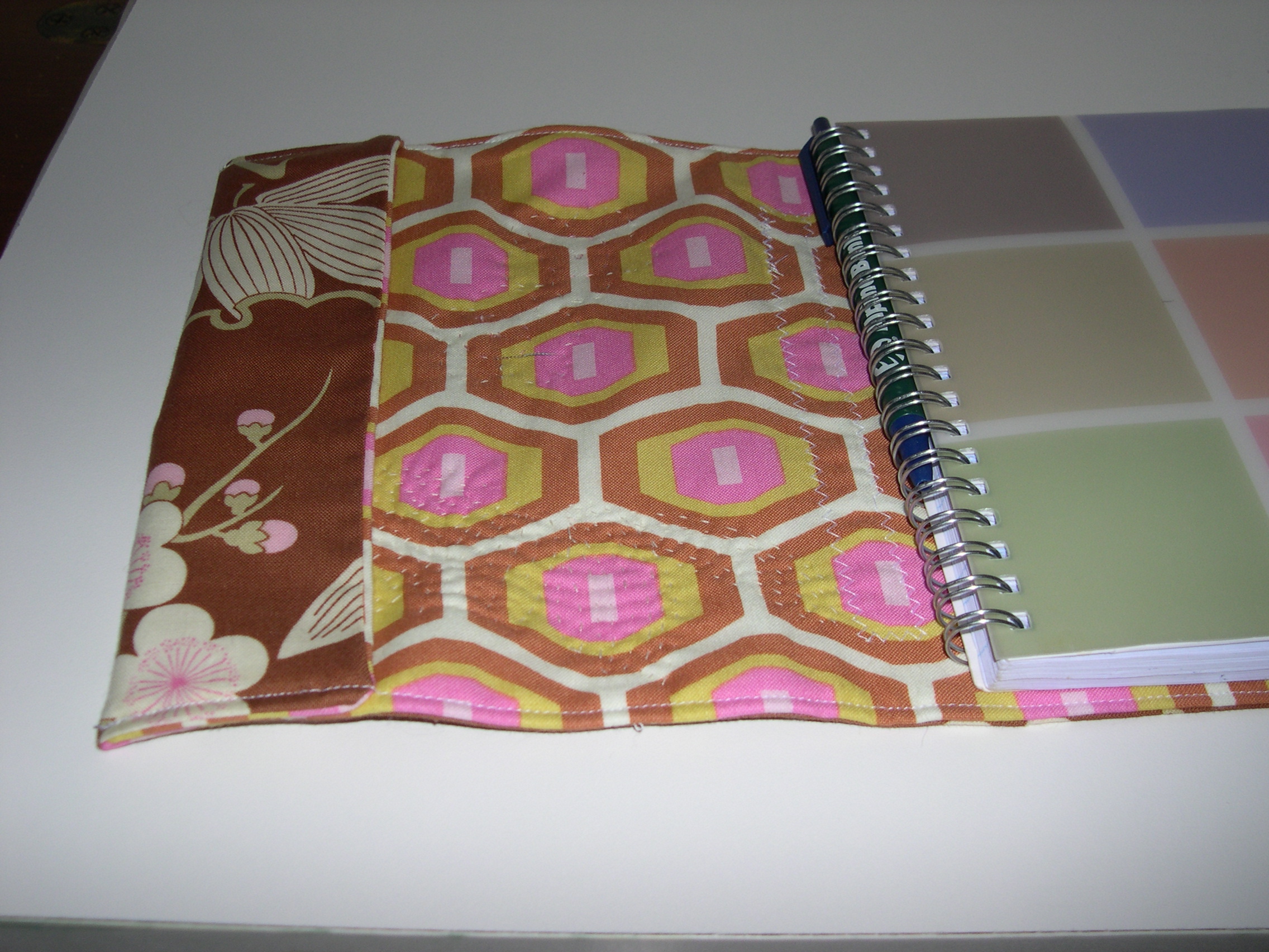 1. Love your hand quilted notebook cover! I find hand quilting to be very relaxing and a great proejct in front of the TV! Love the detail of using the selvedge on the spine – very clever.