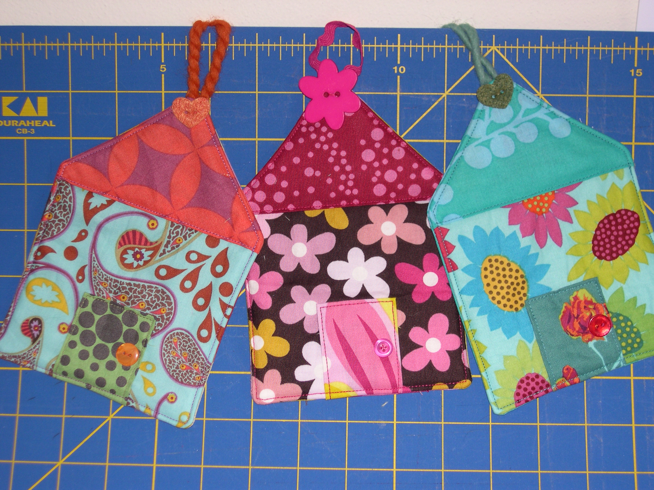 I love all of those projects, but especially the houses. I like the button you put on the top of each tab– so cute. I definitely need to make some more bright and colorful ones for me. And I’ve been eyeing that caddy too….one day I will make it!