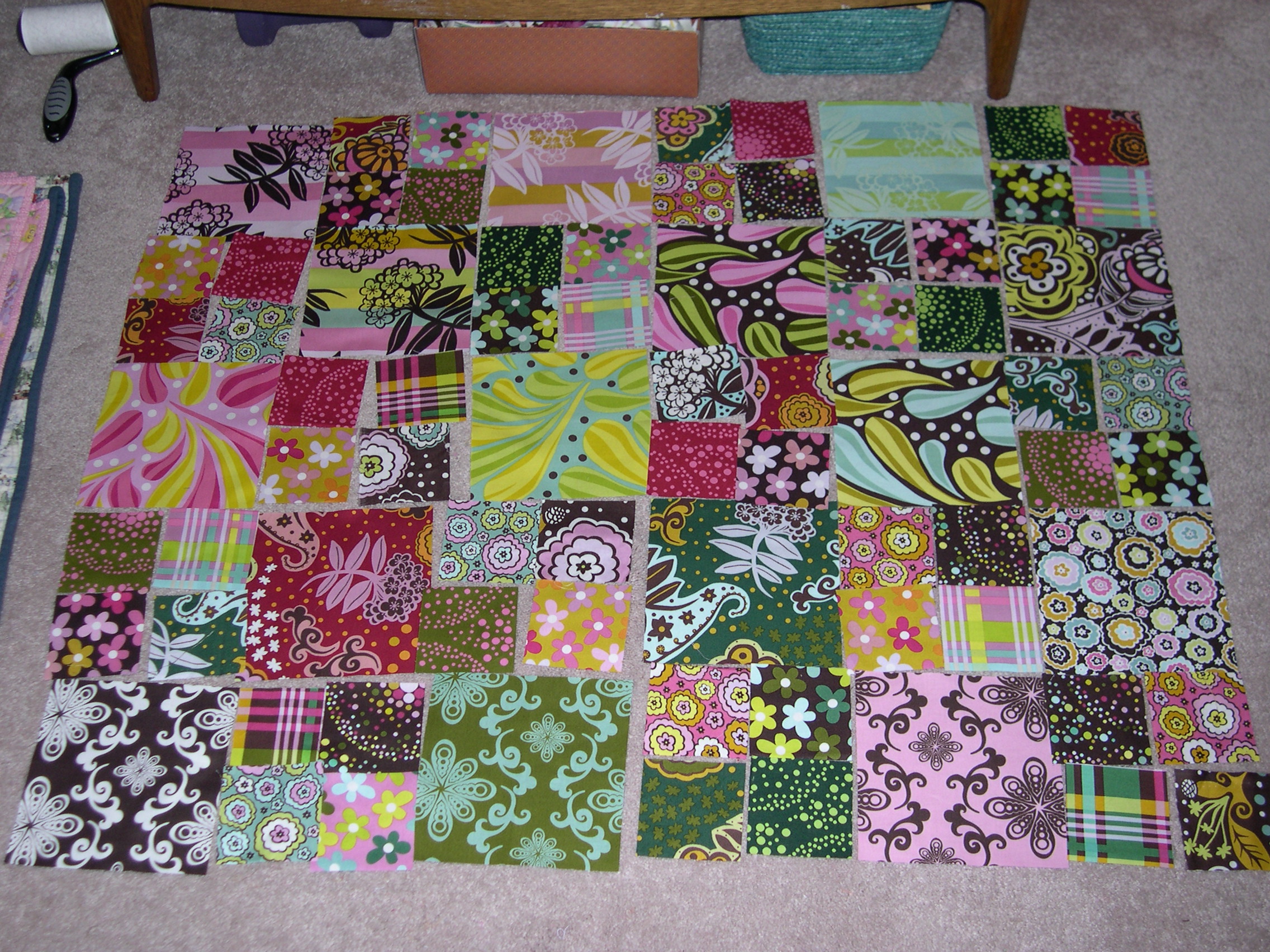More cutting into the chocolate lollipop stash! I’m not following anyone else’s pattern on this one either, nor following any quilting rules or guidelines. Just piecing the way I feel like it.