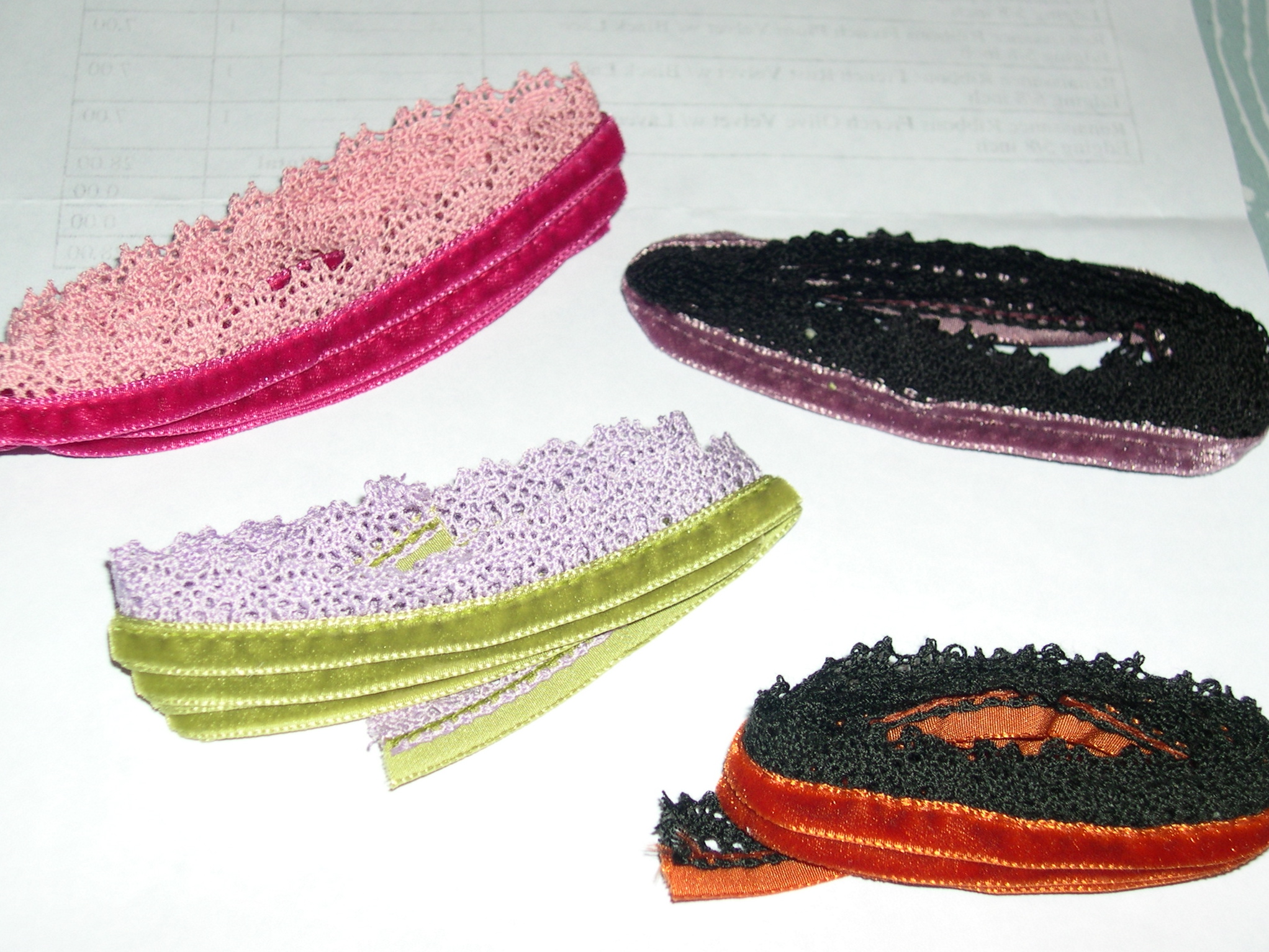 I had to have some of those lace and velvet trims – so delicate and lovely! No plans for them yet but I was inspired by the vintage look and the different color combinations, from a feminine and girly day bag to a little darker side for an evening bag.