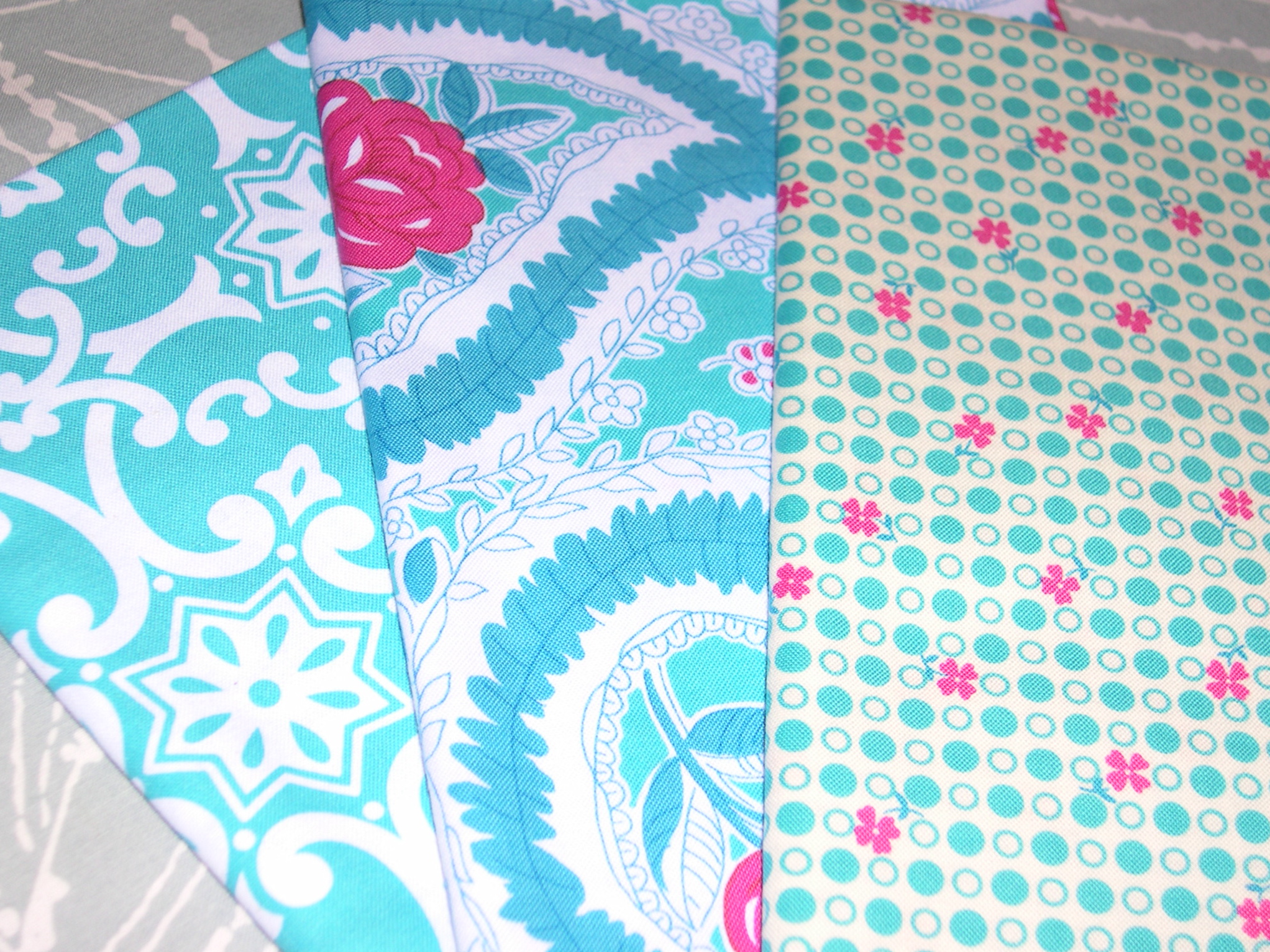 Finally, I picked up a couple fabrics from Patty Young’s fabulous new collection, definitely destined for a summer purse or party clutch. Ah yes, more turquoise!