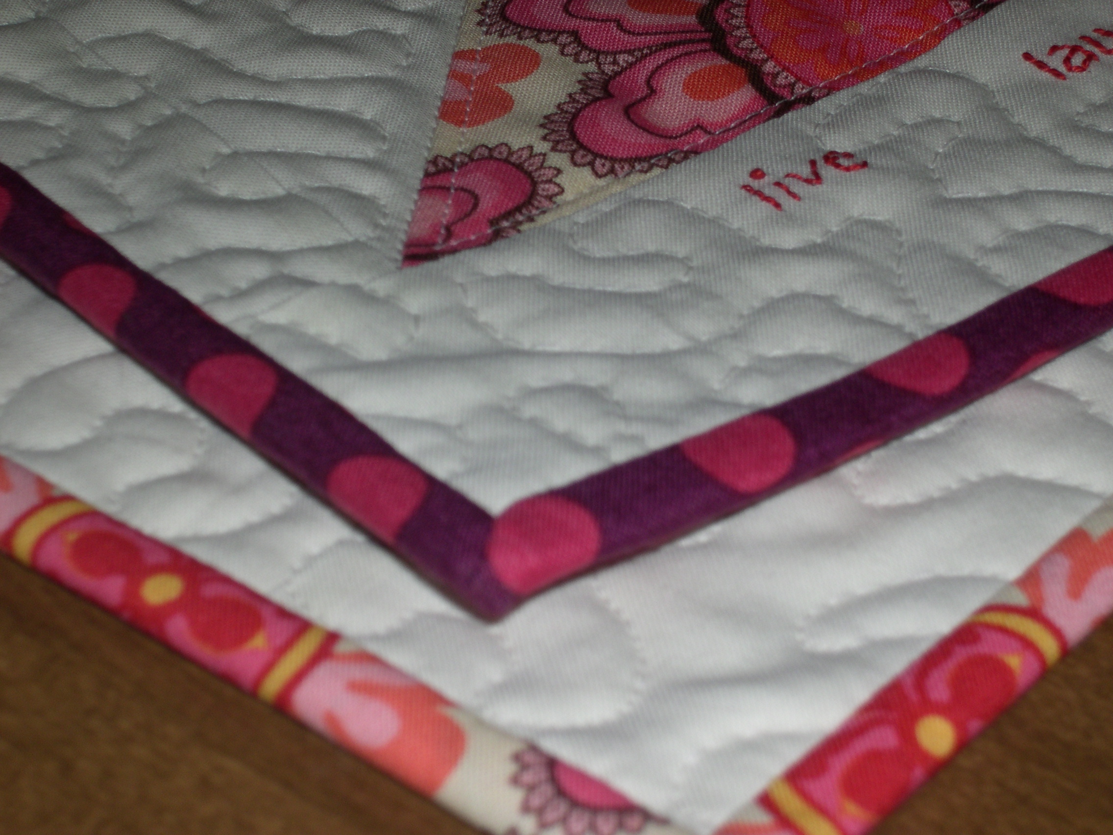 I’m happy and relieved I sewed the bindings onto my three recently finished quilts. I just need to hand stitch them as I get free time (or the next time we rent a movie). If it hadn’t been for my to-do list, I probably would have put off this task because it kinda felt like a chore.