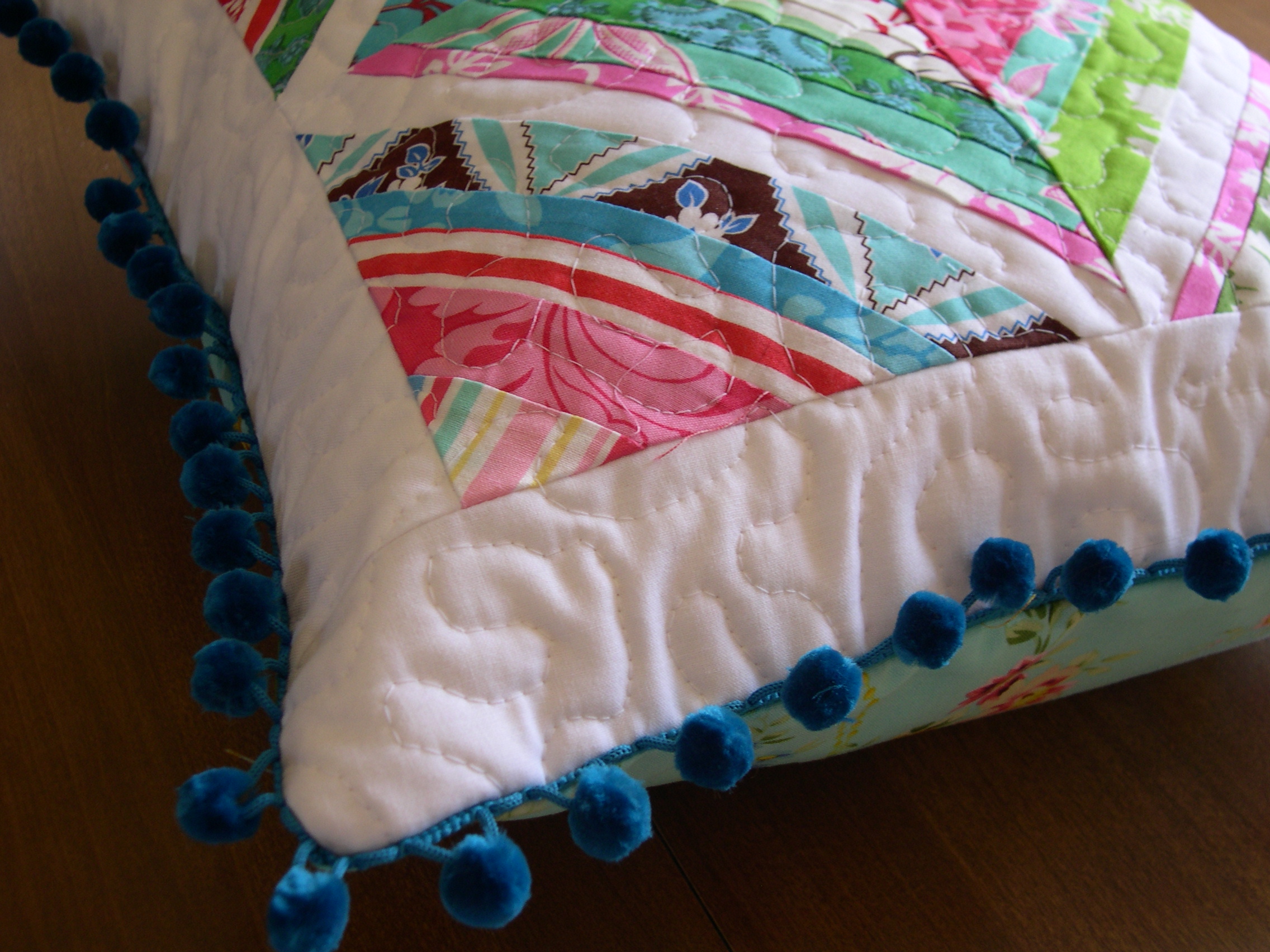 3. Love the pillow! The pom pom trim really does make people smile. The binding looks pretty too. 🙂