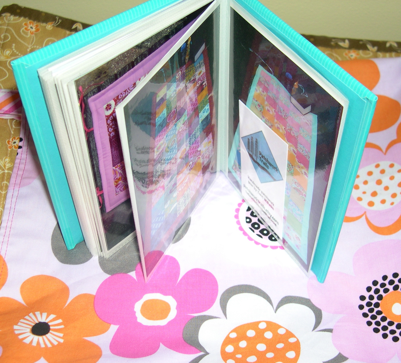 Experts say when you make stuff to sell you should always carry your products with you as free advertising. For instance, I like to sew. However, I can’t carry all my bags and patchwork gear with me everywhere I go, so I had photos printed and I put them into a cute little album.