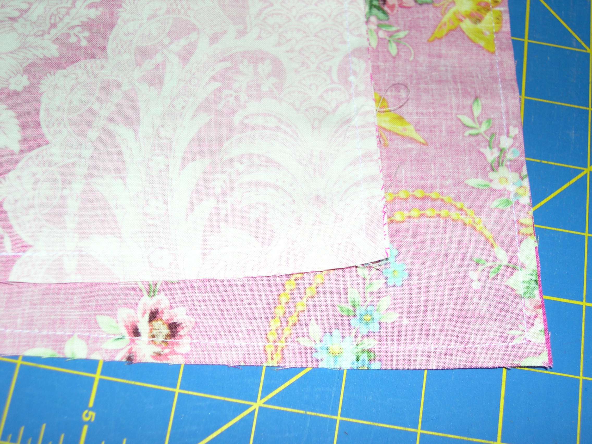 Snip off the corner, leaving a 1/4 inch seam allowance. Repeat for the remaining corners.