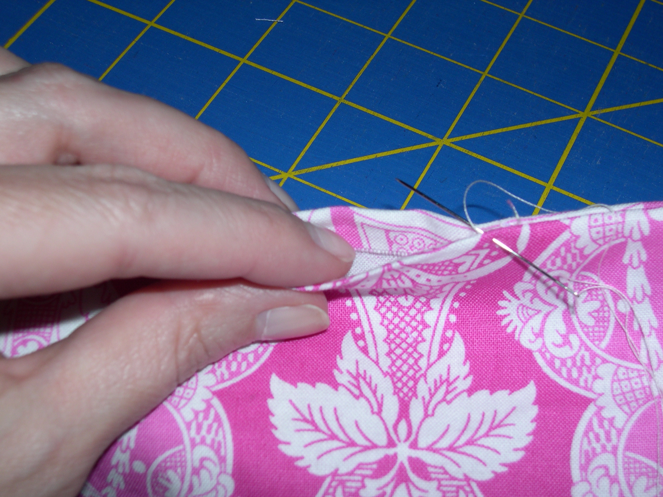 Pull the outside bag through that hole in the bottom of the lining fabric to pull the two bags right side out.