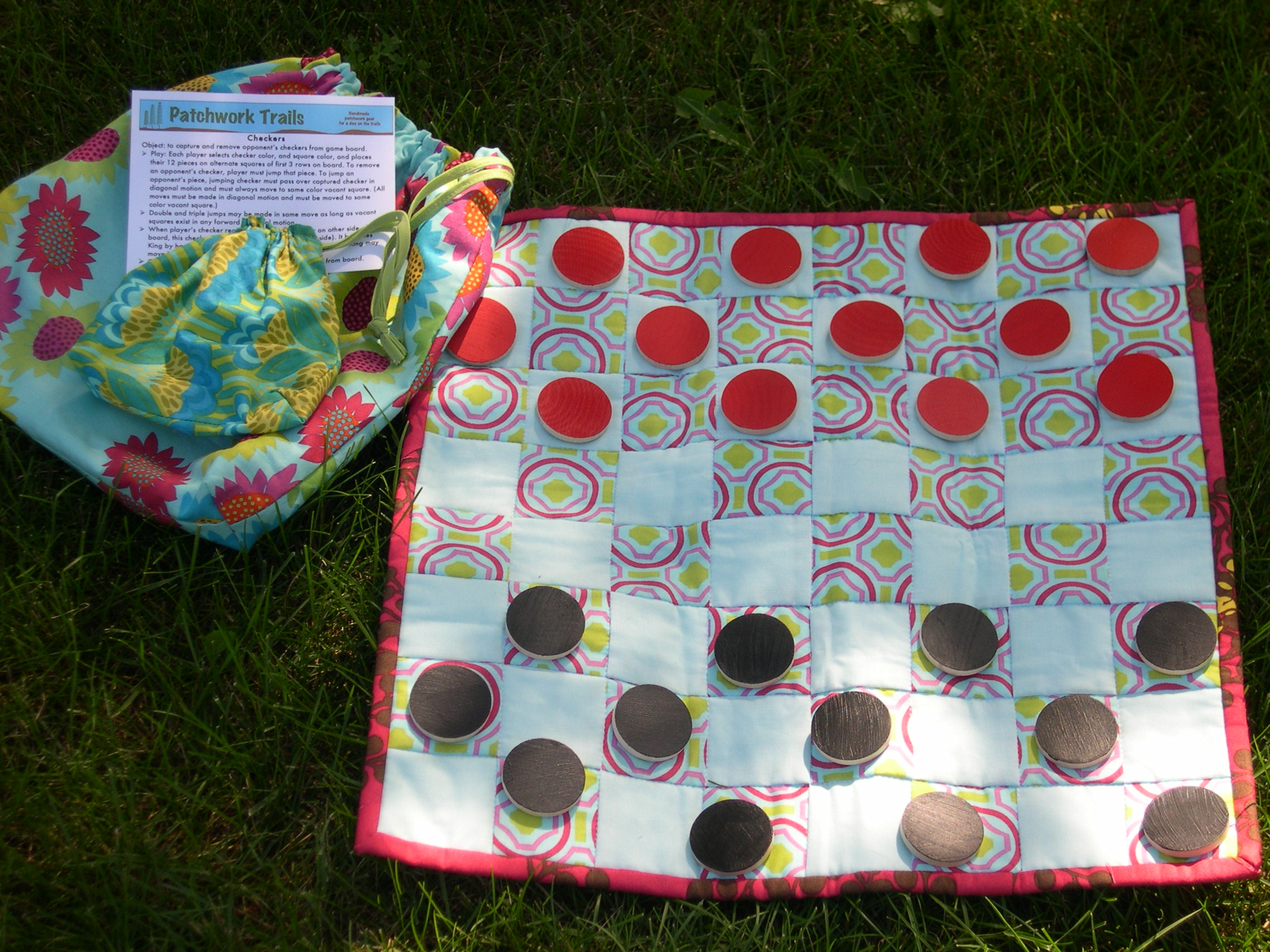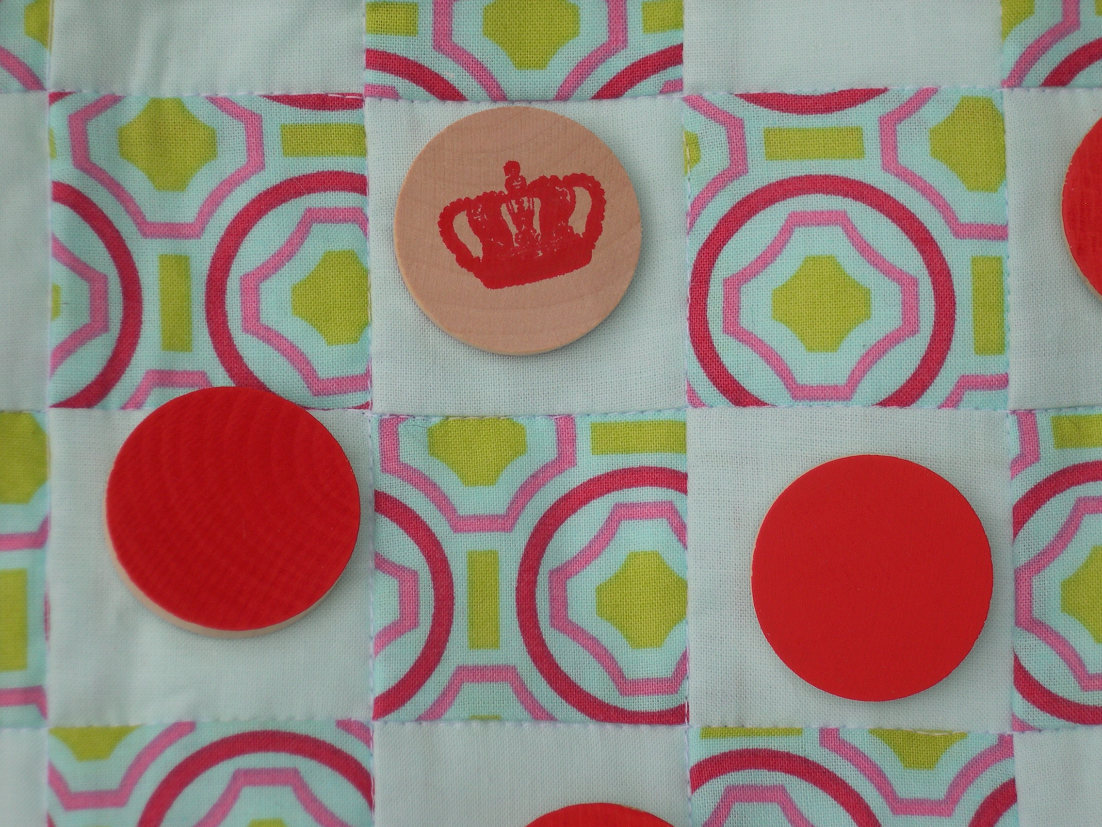 The At Home section includes a very hip argyle embellished pillow, a fabric-covered magnetic frame for your fridge, a gorgeous apron, and this cool bath mat, which is a couple fat quarters pieced over an old bath towel to spice up that old towel.