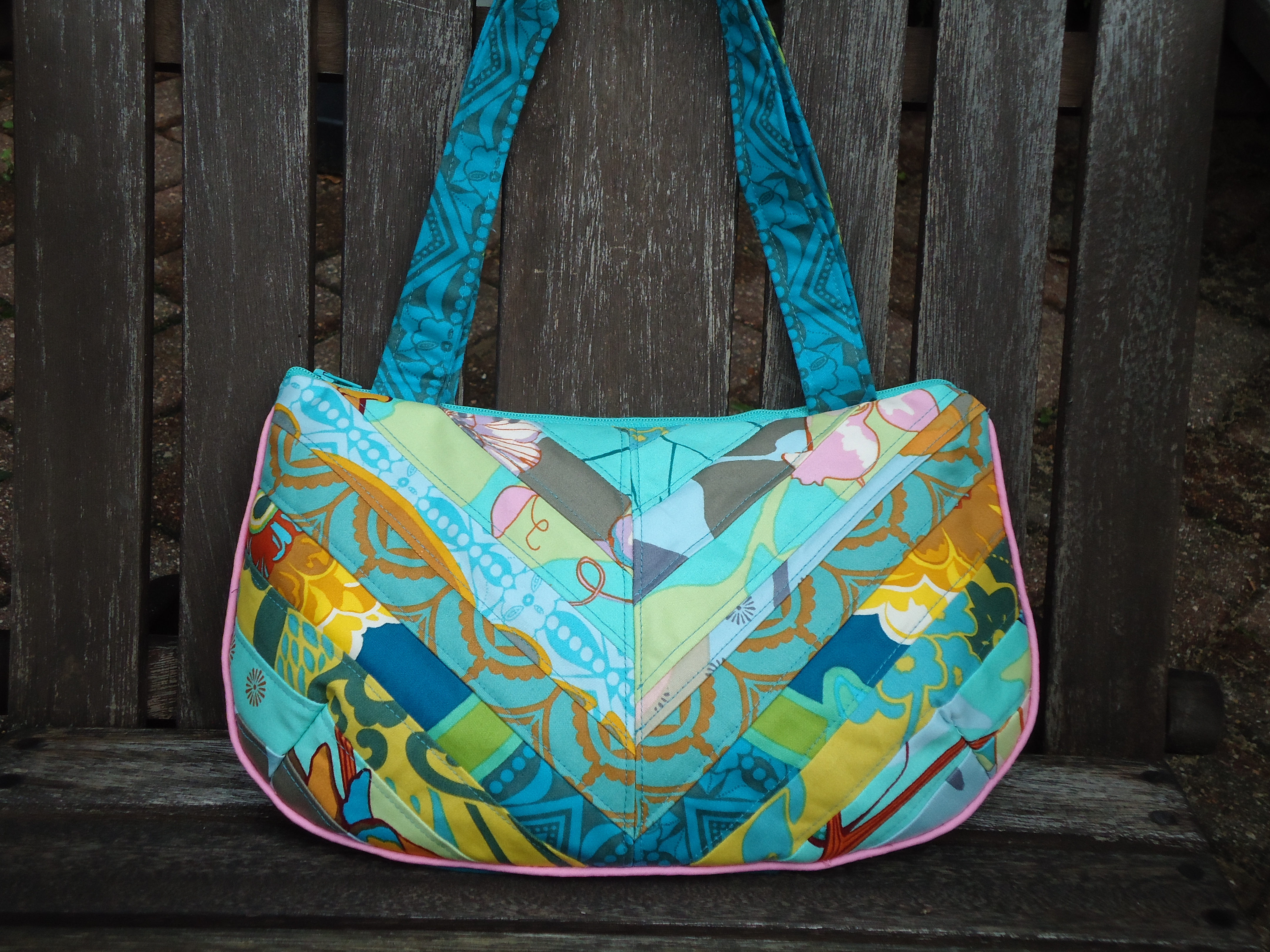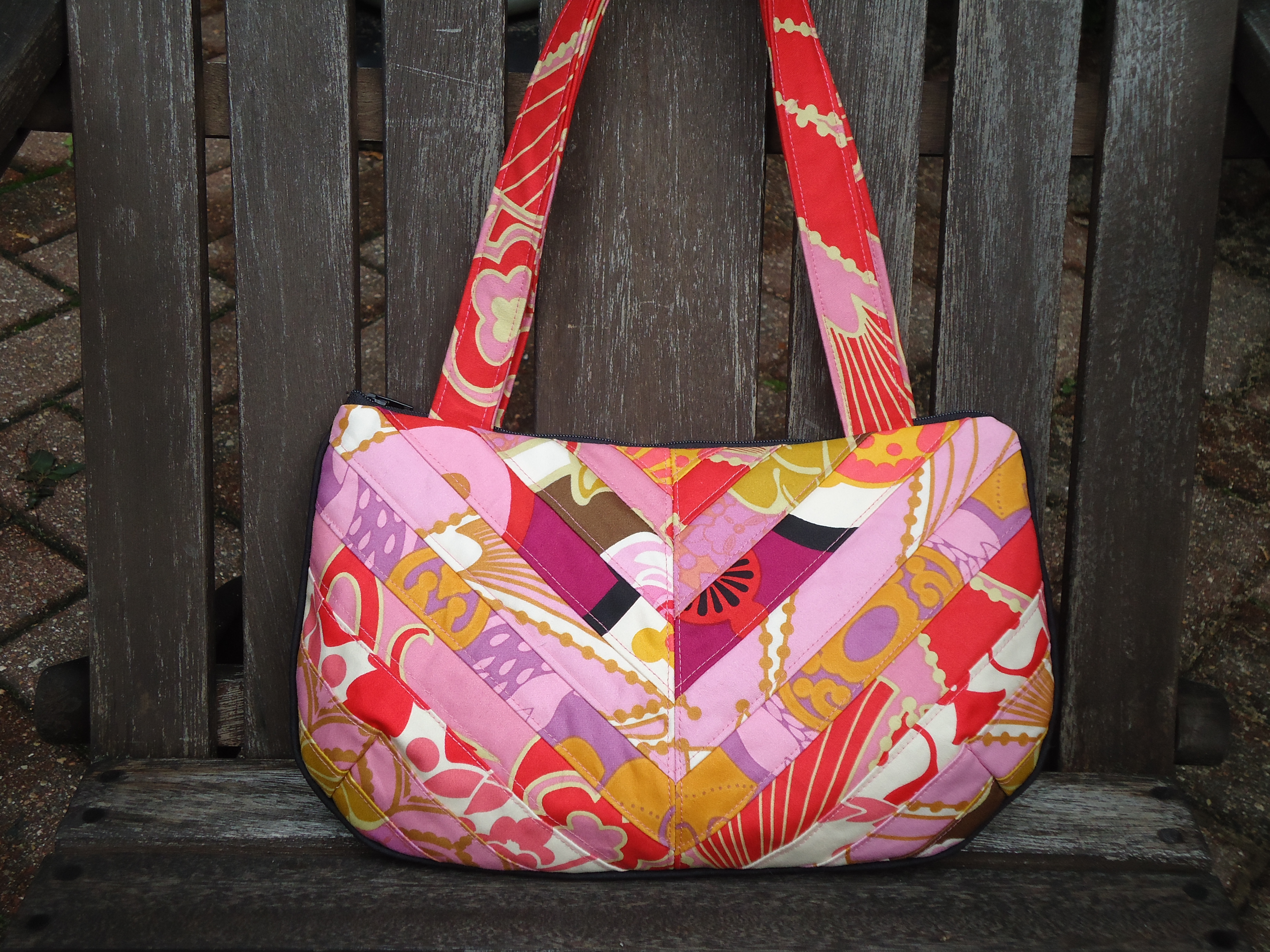 After seeing this handbag in a magazine, I thought a patchwork version of my own handbag was in order. (You know how I feel about leather bags and designer bags – not too crazy about either one.)