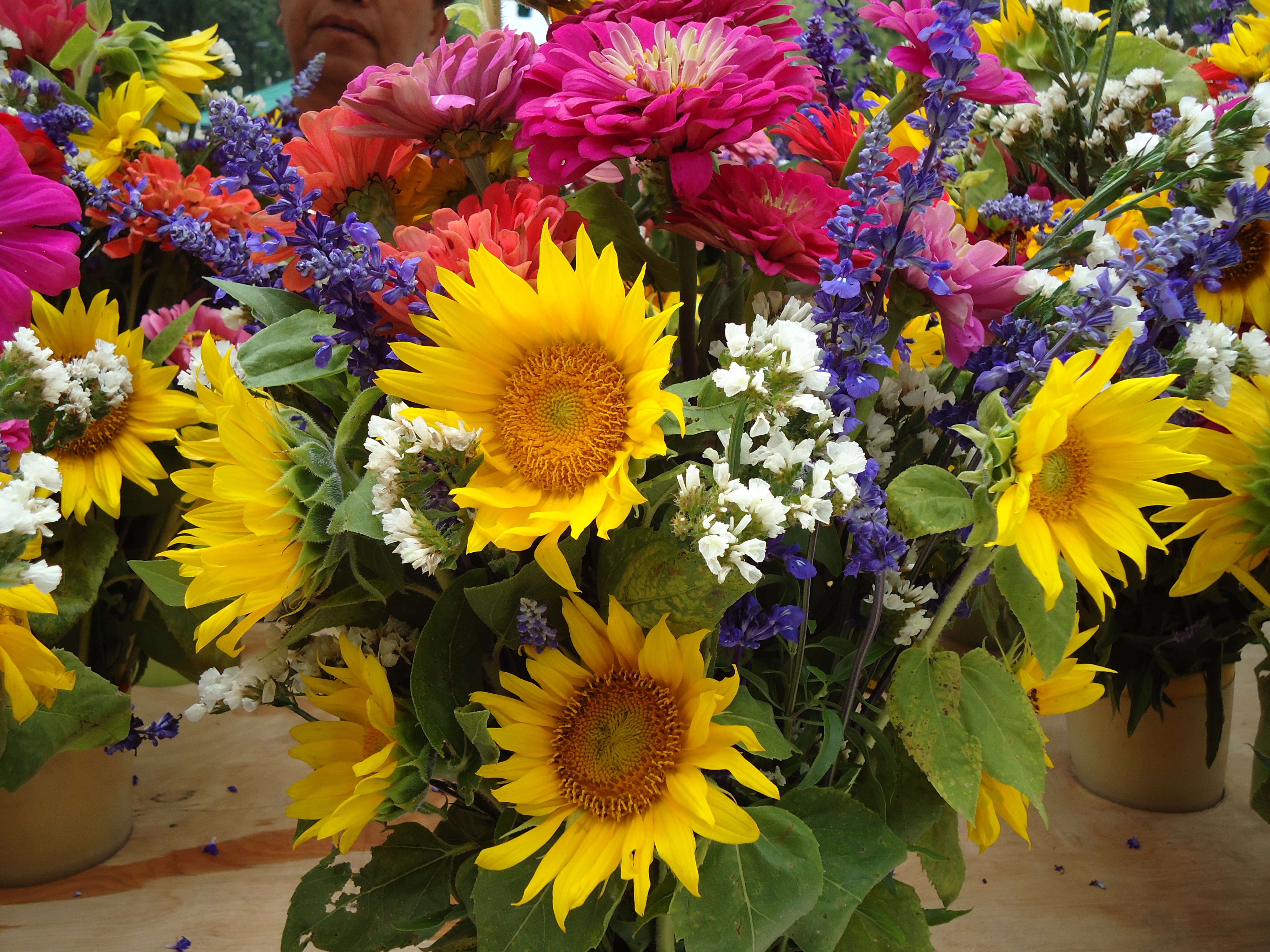 Today, we saw a lot of patty pan squash, zucchini, carrots, onions, tomatoes and a great variety of flowers.