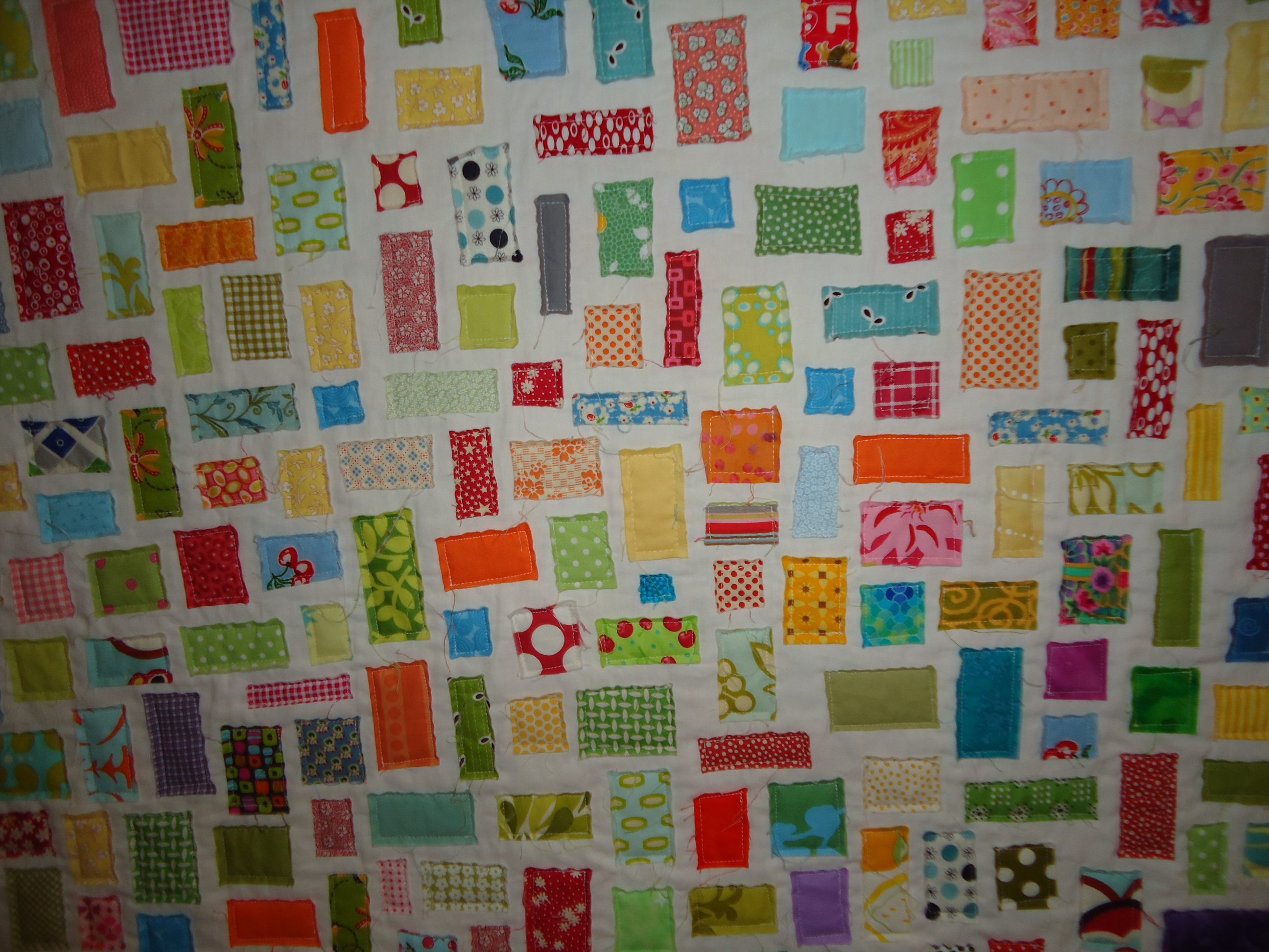 It’s so nice to have a fresh pile of scraps because now I’m even more excited to make my own ticker tape quilt after seeing her masterpiece in person. I stopped and stared at it every time I walked past it. It was more fun than an I-Spy quilt.