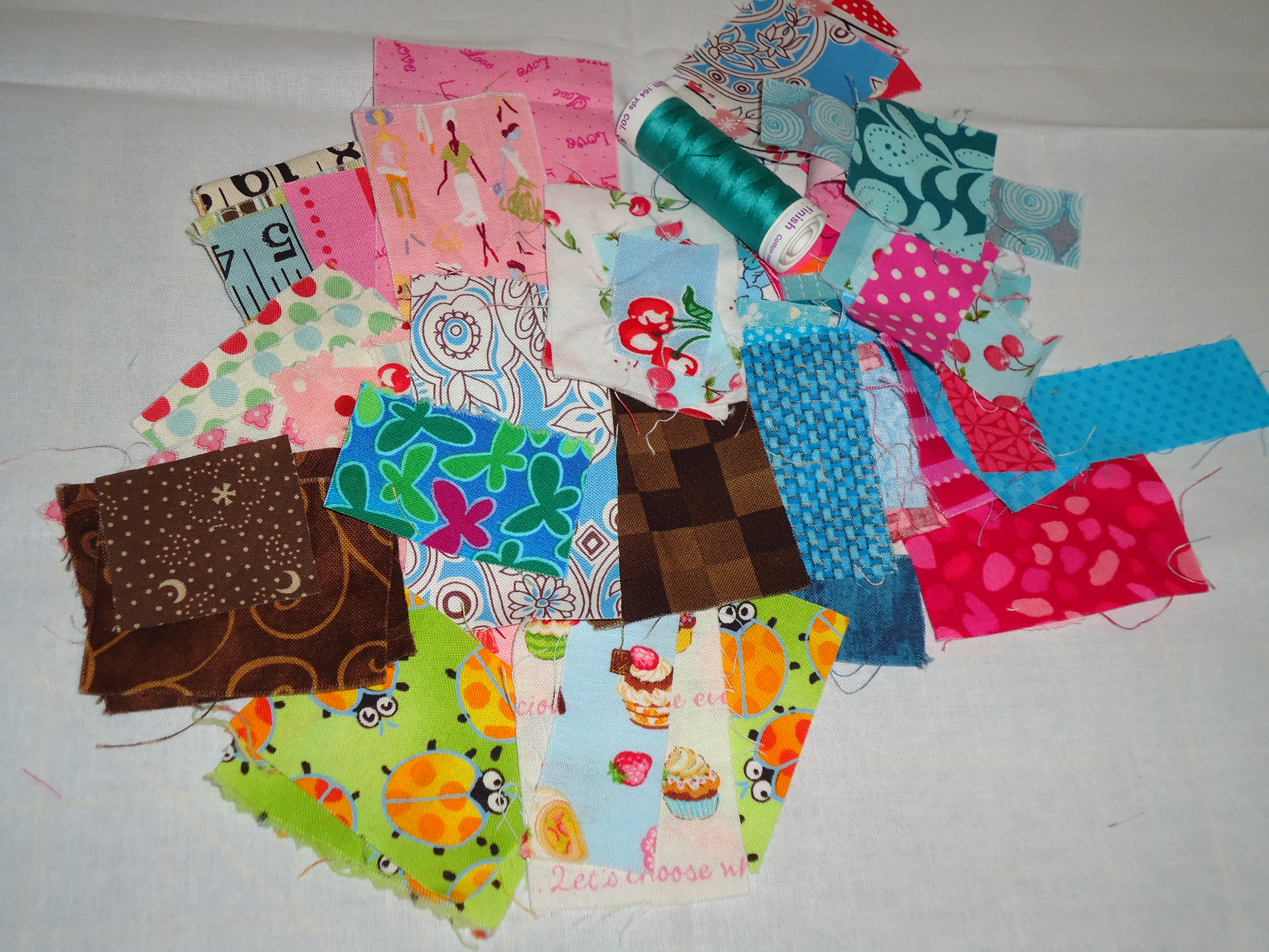 We traded fabrics and and the tiniest scraps.