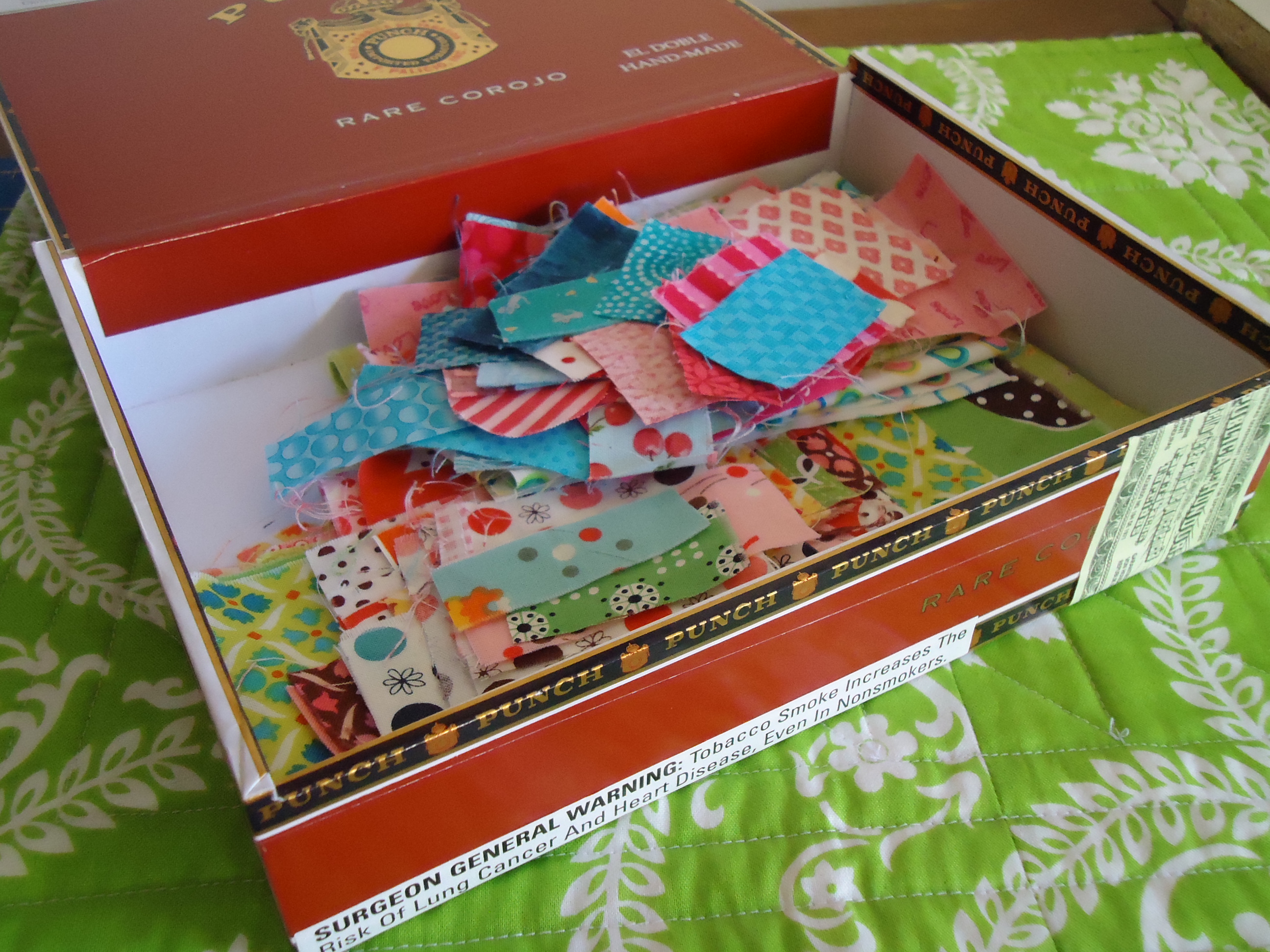 I also have a stylish place to store my snippets (very small scraps) for a future ticker tape quilt.