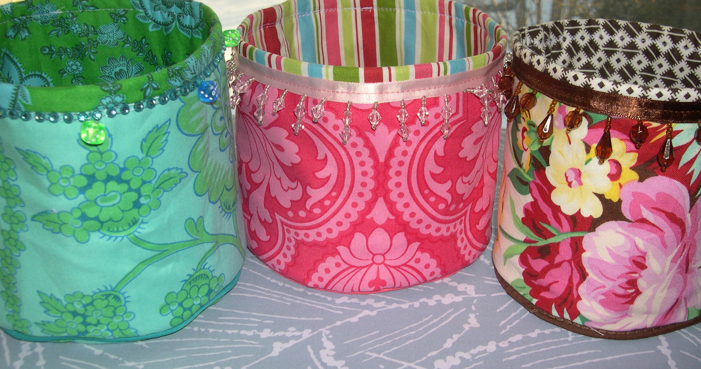 I even have some fabric buckets with bling to store snippets, trimmings, and tools!