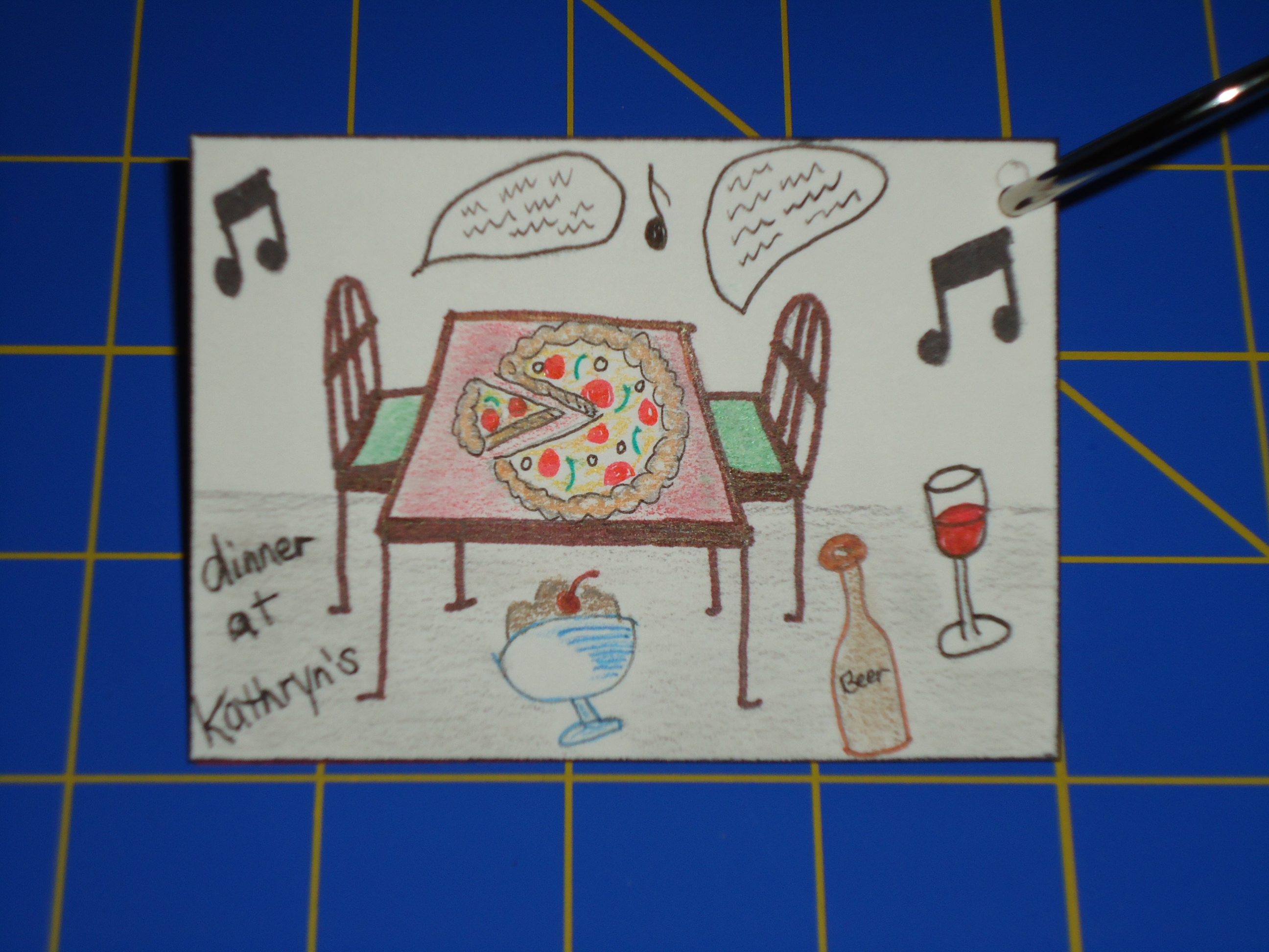 On Friday night, we went to a fun pizza party with new friends I made at school, so I illustrated the food and the mood of the evening.