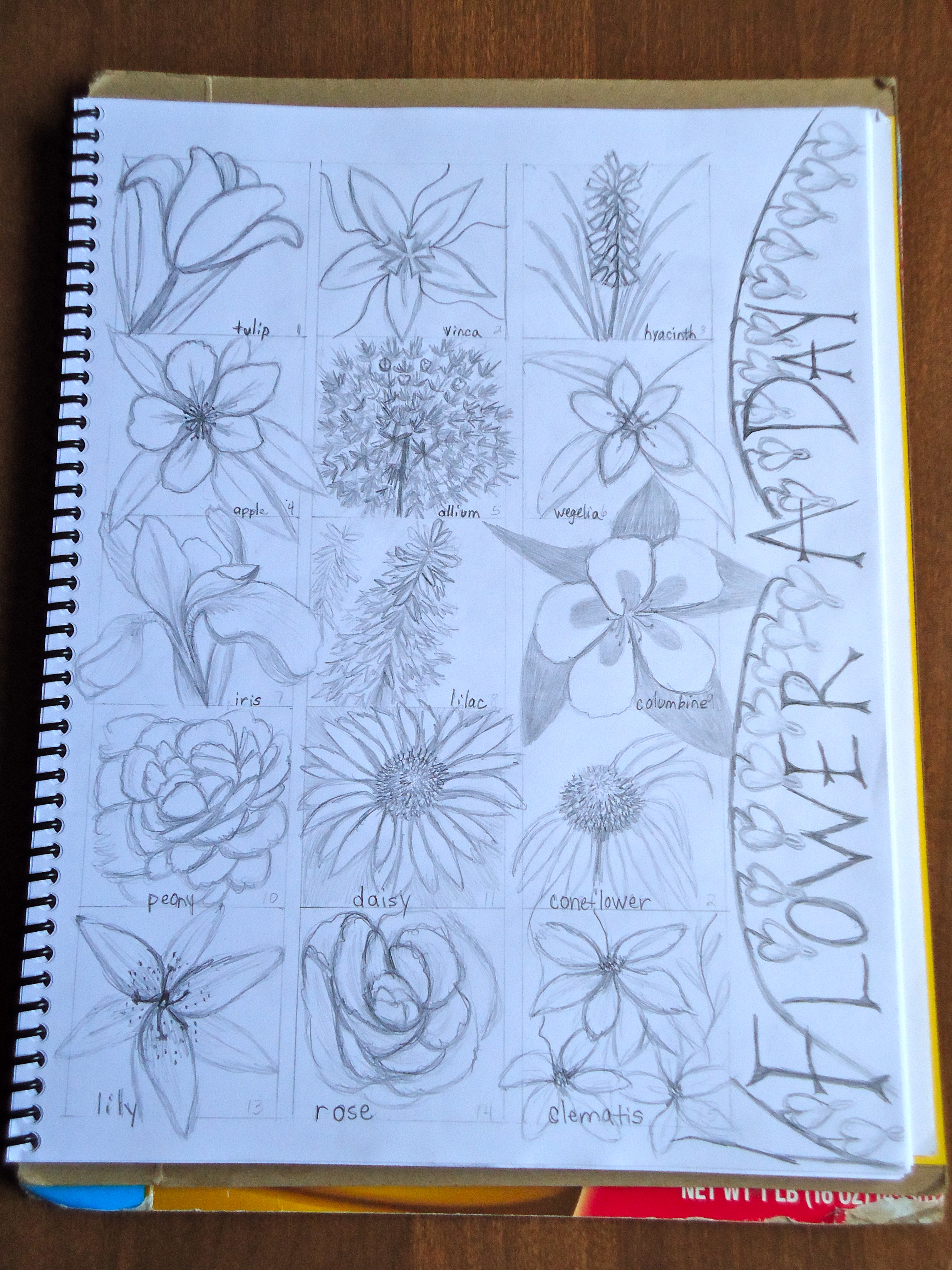 Remember when I shared with you the start of my flower-a-day page of thumbnails? I finally finished it! Let me tell you, it feels so good to finish this page.