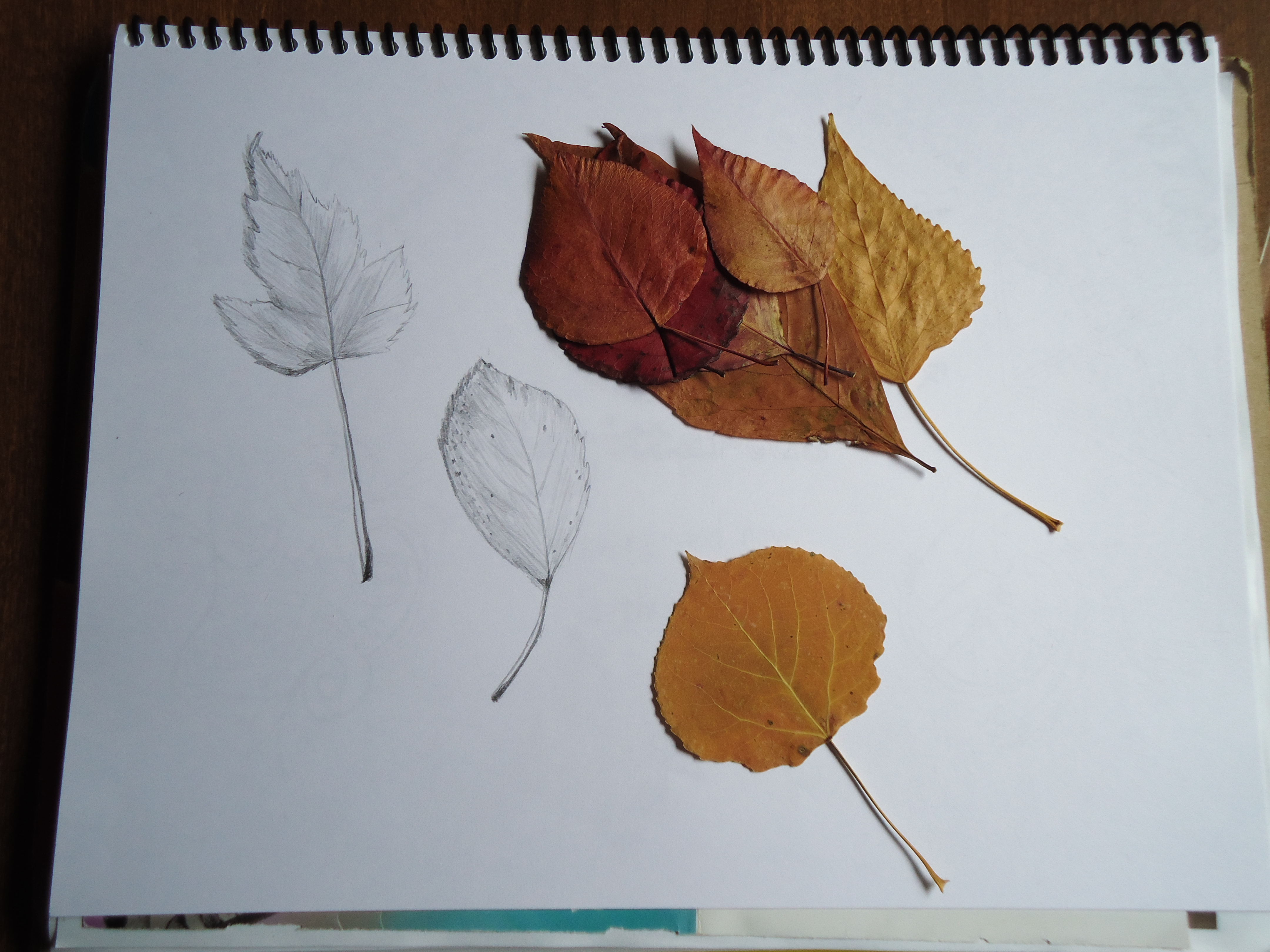 Lately I’ve been working on leaf drawings, scattering them about the page, as if they are falling from the trees, blowing in the Autumn wind, landing randomly on the pages of my sketchbook.