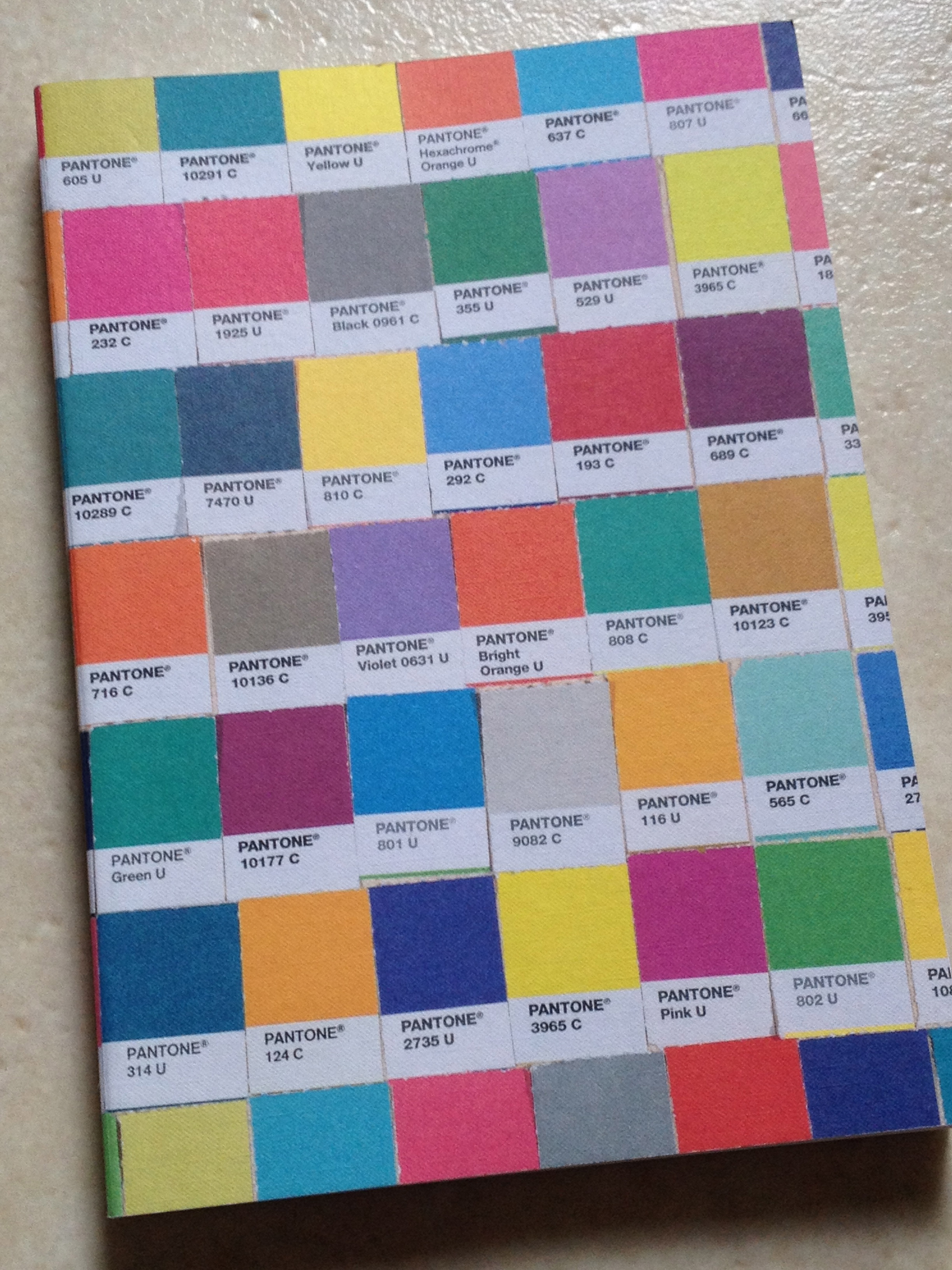 My latest favorite is this colorful sketchbook I bought at Blicks. The cover is a collage of Pantone color chips.