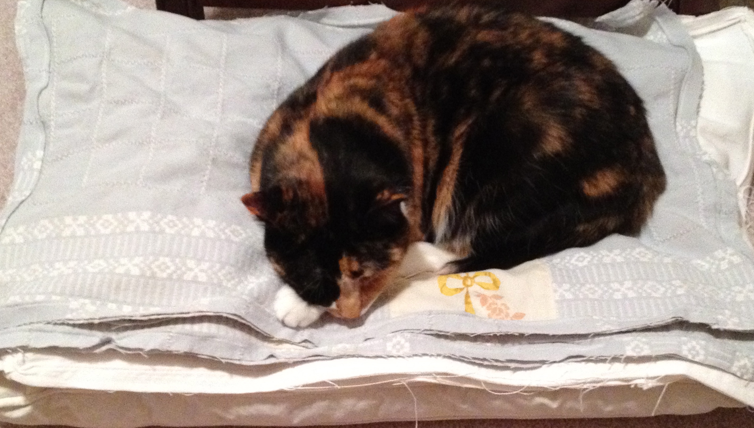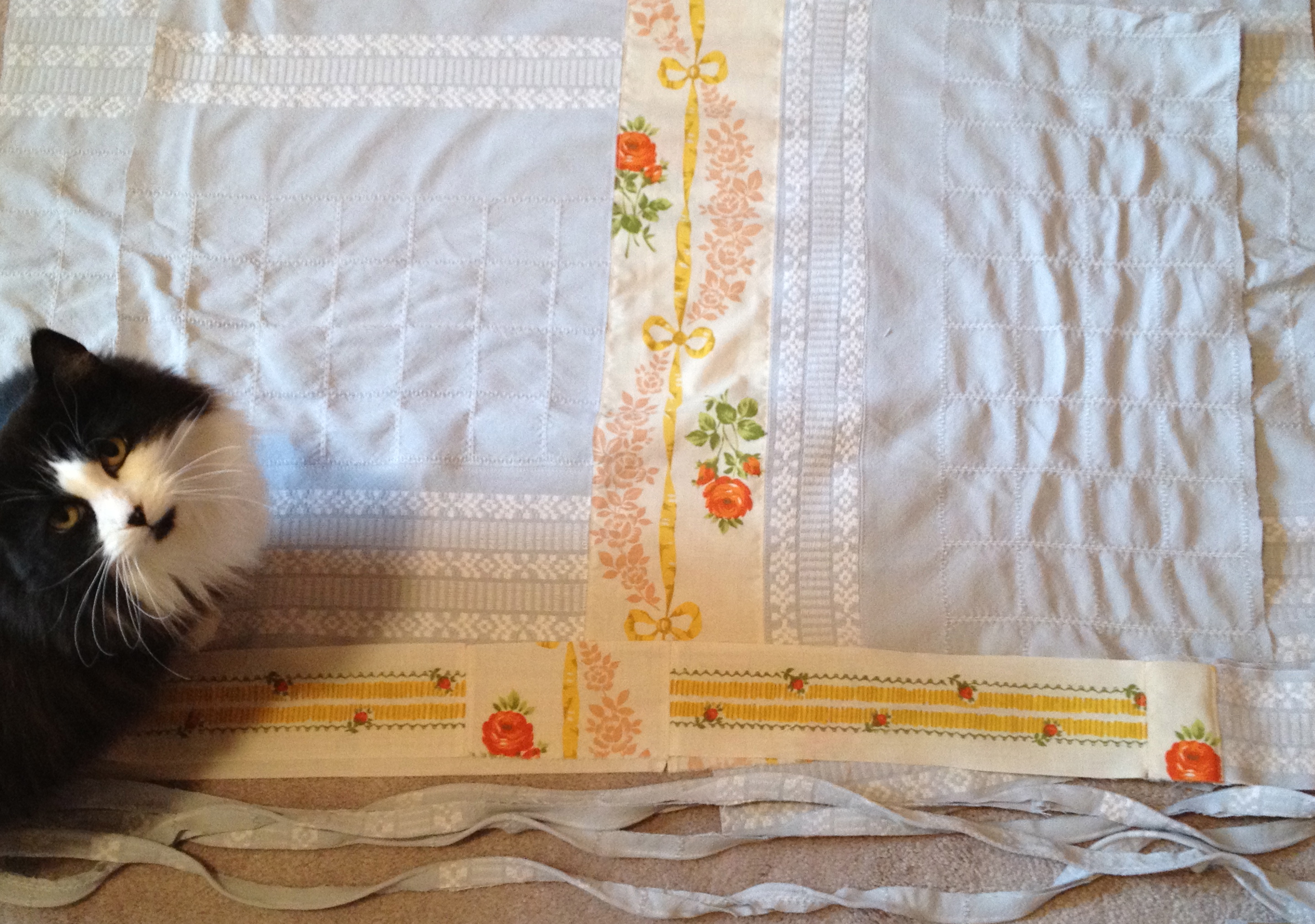 Hi Terri! Nice to see your beautiful cats helping with your sewing and keeping you company! Those pillow cases are wonderful! All the details you have made are so perfect!