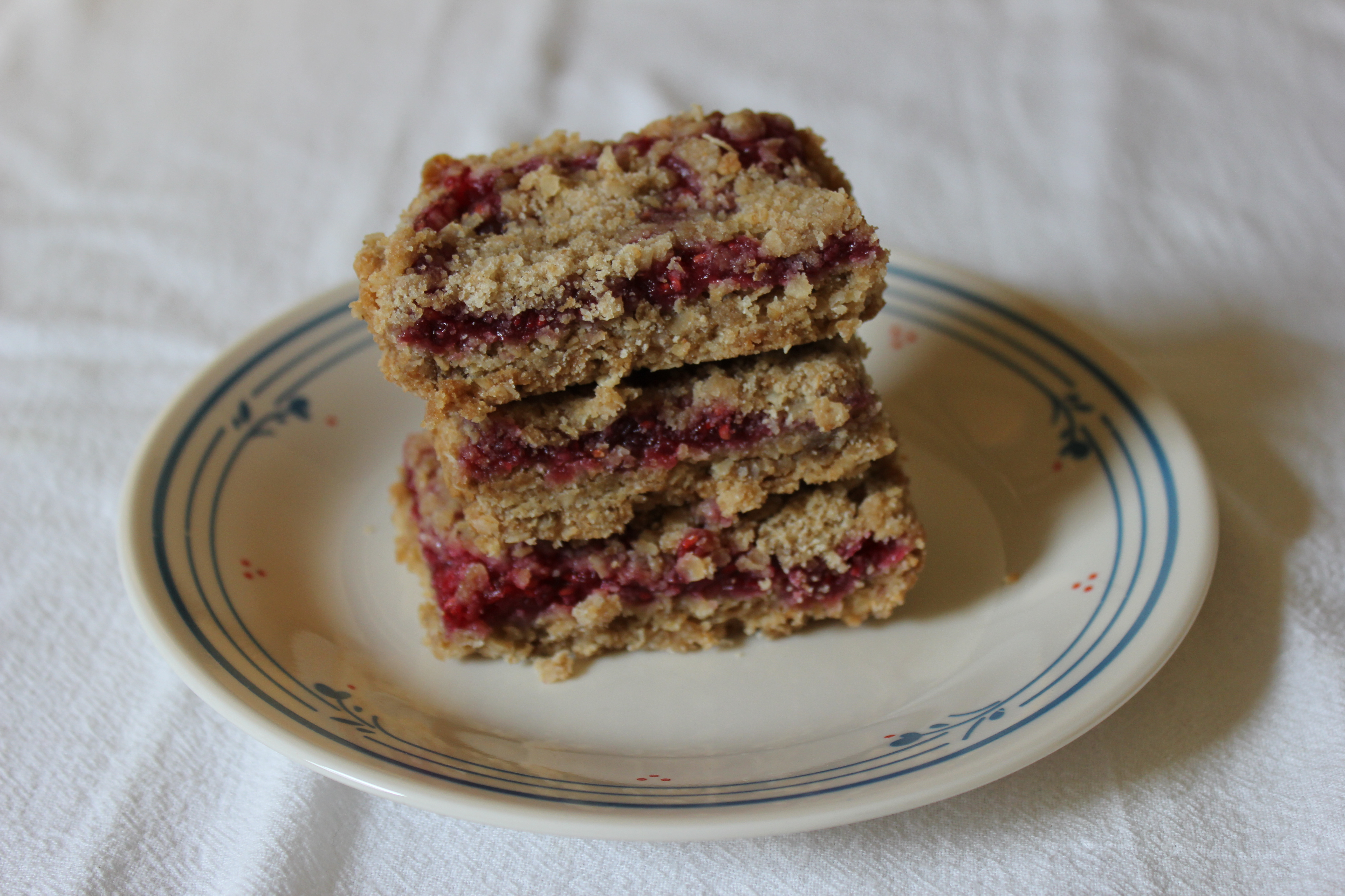 I made Raspberry Oatmeal Bars recently. They remind me of apple crisp, one of my favorite desserts. I might add that they are also good for breakfast!