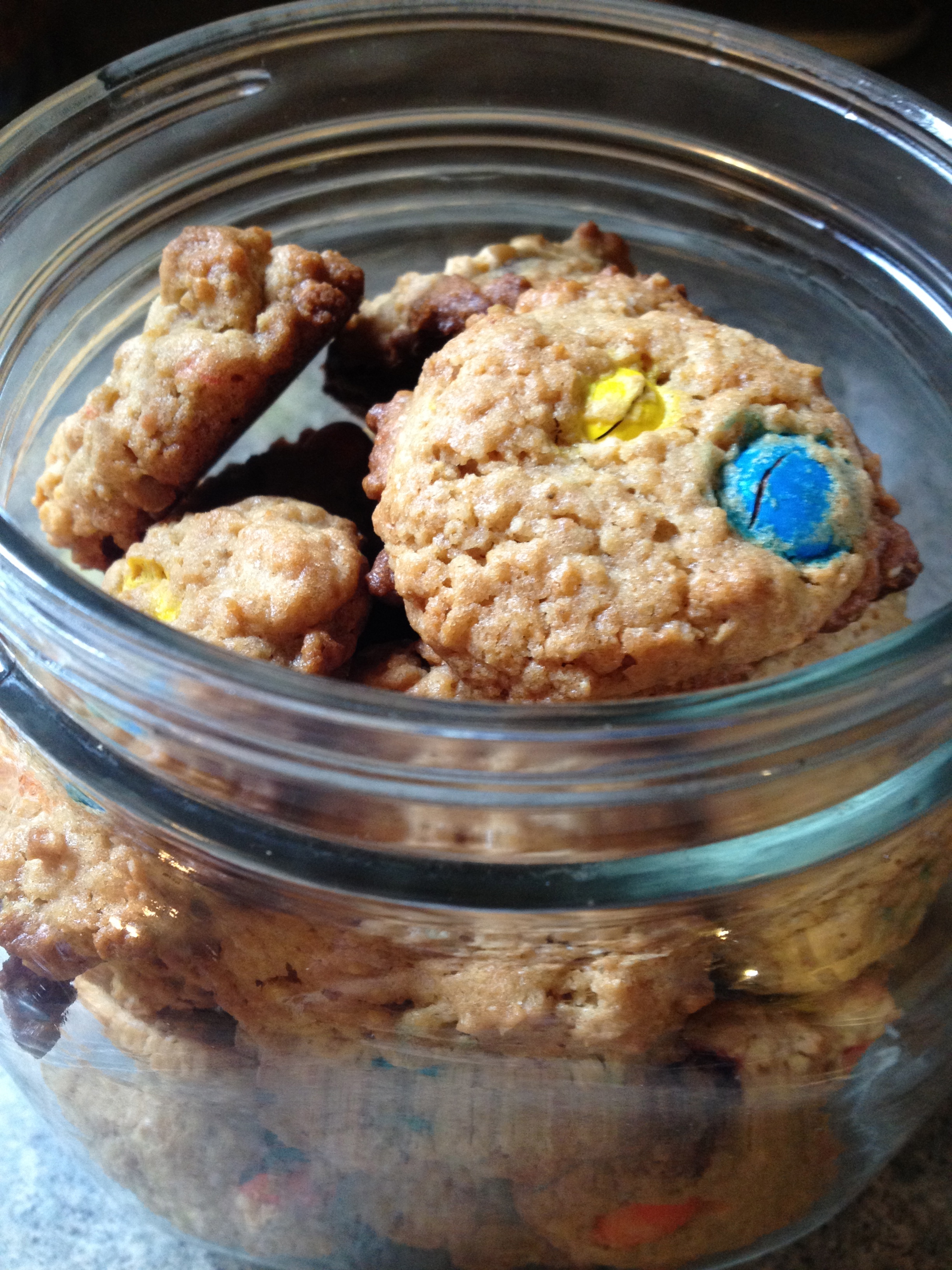 I love having fresh-baked cookies in the house, more so than any other dessert. I don’t know where I got this recipe for Monster Cookies, but it makes what I think is the perfect cookie, soft and chewy.