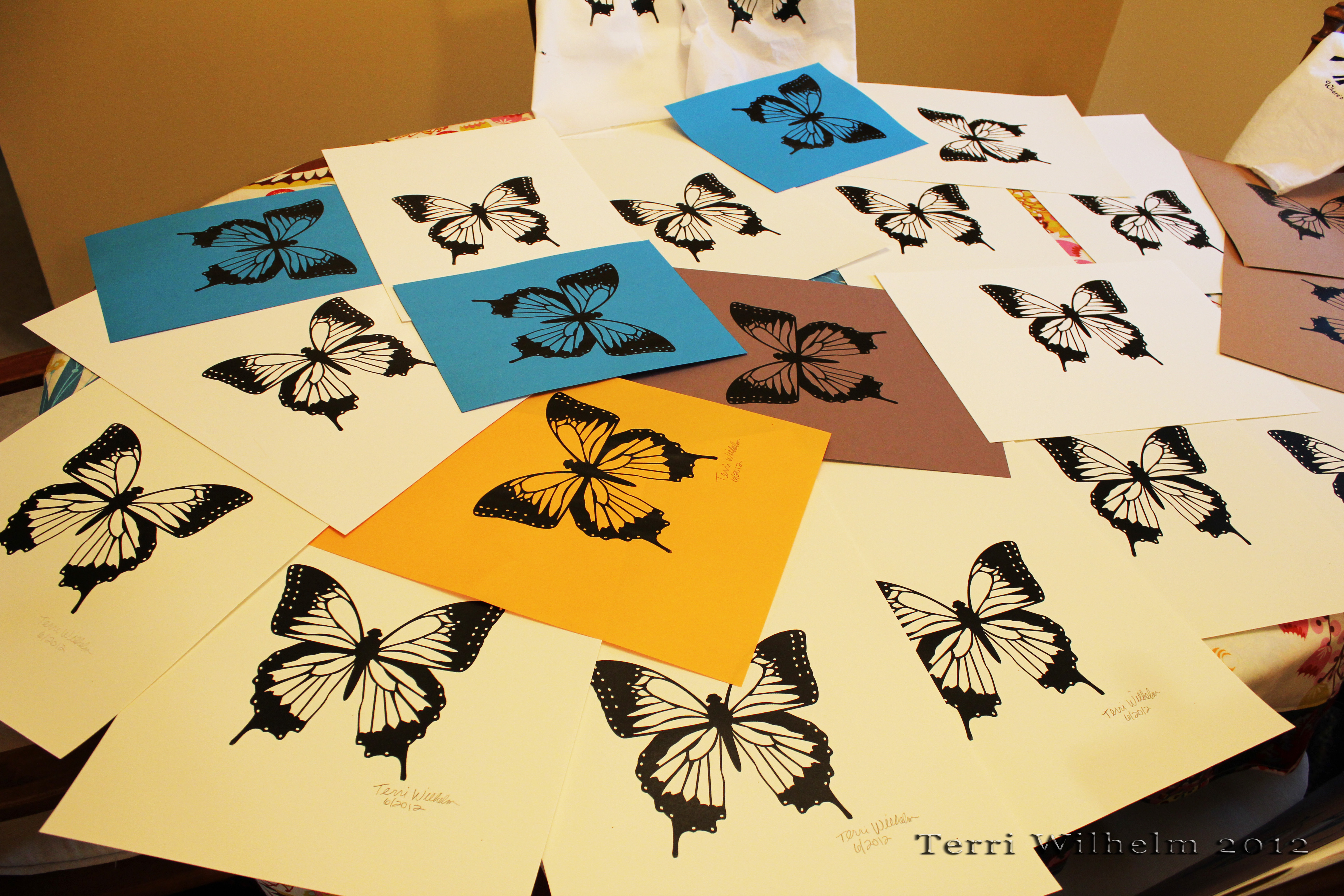 Thanks Amy! I’m hoping to try some of my other butterfly drawings in different sizes and on different mediums. I have lots of other illustration ideas I want to try too. I have a work table in the basement that I’m going to attach hinge clamps to and dedicate to screen printing. We have a small, half-finished room in our basement that we’ve just been using for storage. Now I’m excited to be able to set up my own screen printing workshop. I’m on the waiting list for the screen printing class in the Fall semester, so at least I’ll be able to do it at home if I can’t get into the class.