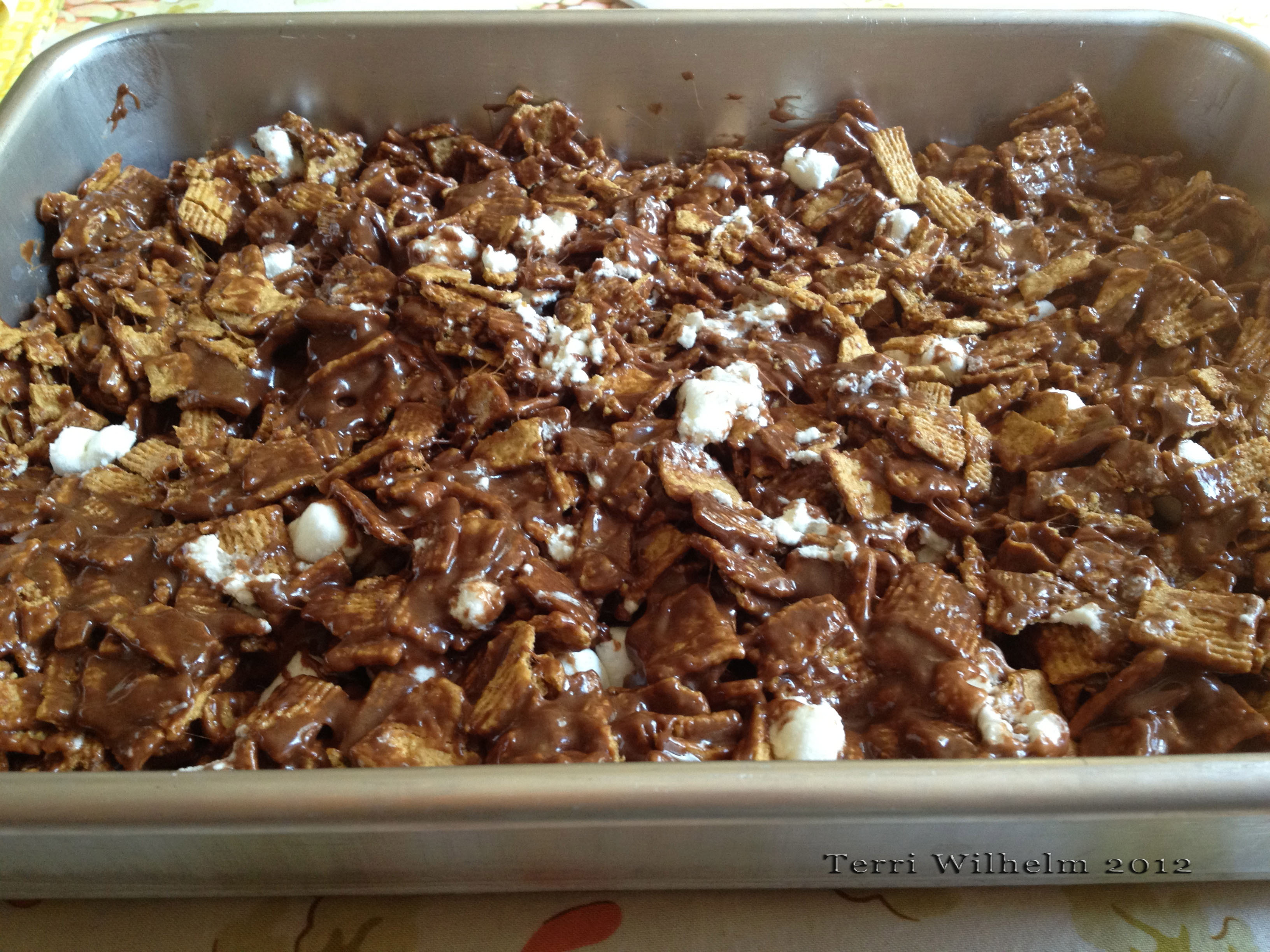 I saved a recipe for Indoor S’Mores from the Golden Grahams cereal box about five years ago, and haven’t seen it printed since. This tasty pan of bars makes you think of bonfires and roasting marshmallows over the fire. This version of S’mores is easy to make anytime since you don’t need a campfire, although it doesn’t have that same smoky, outdoors taste as bonfire s’mores.