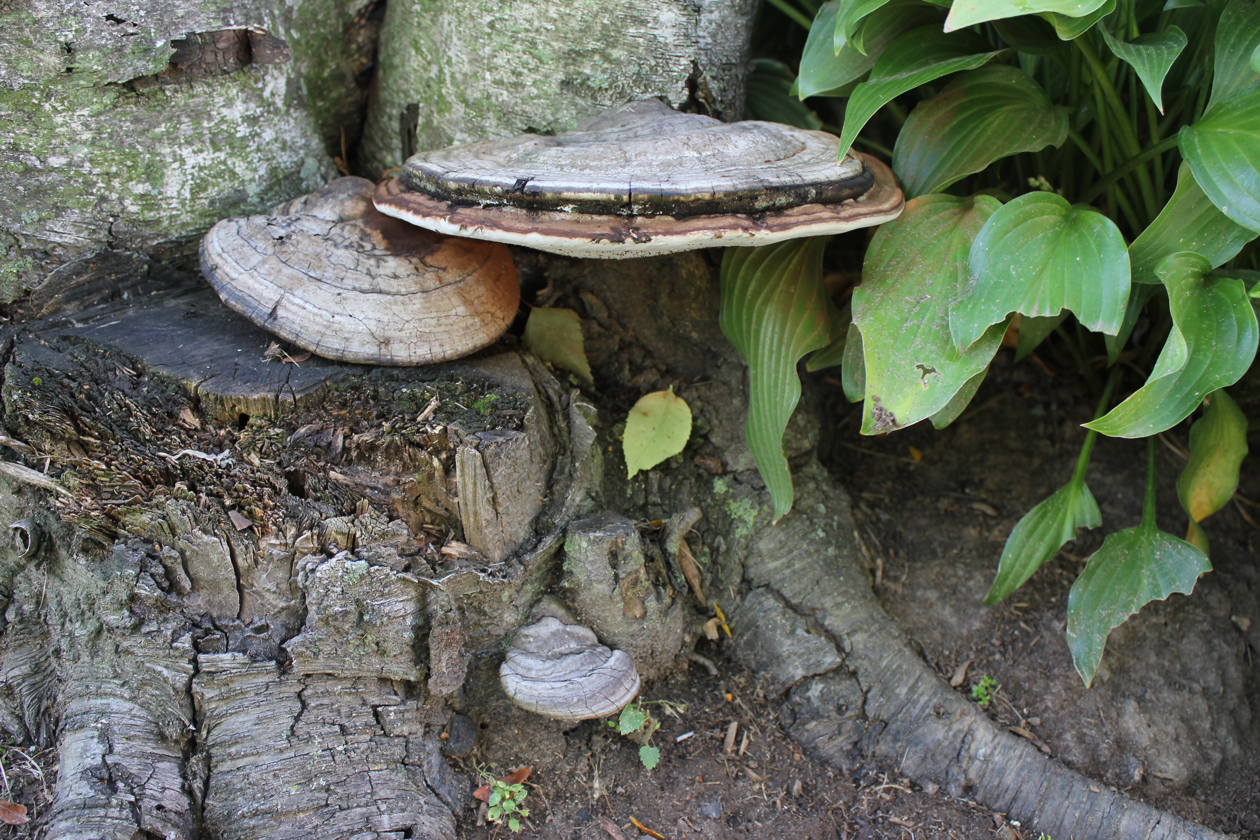 Our dying birch tree continues to grow more fungus and expand this little fairy environment.