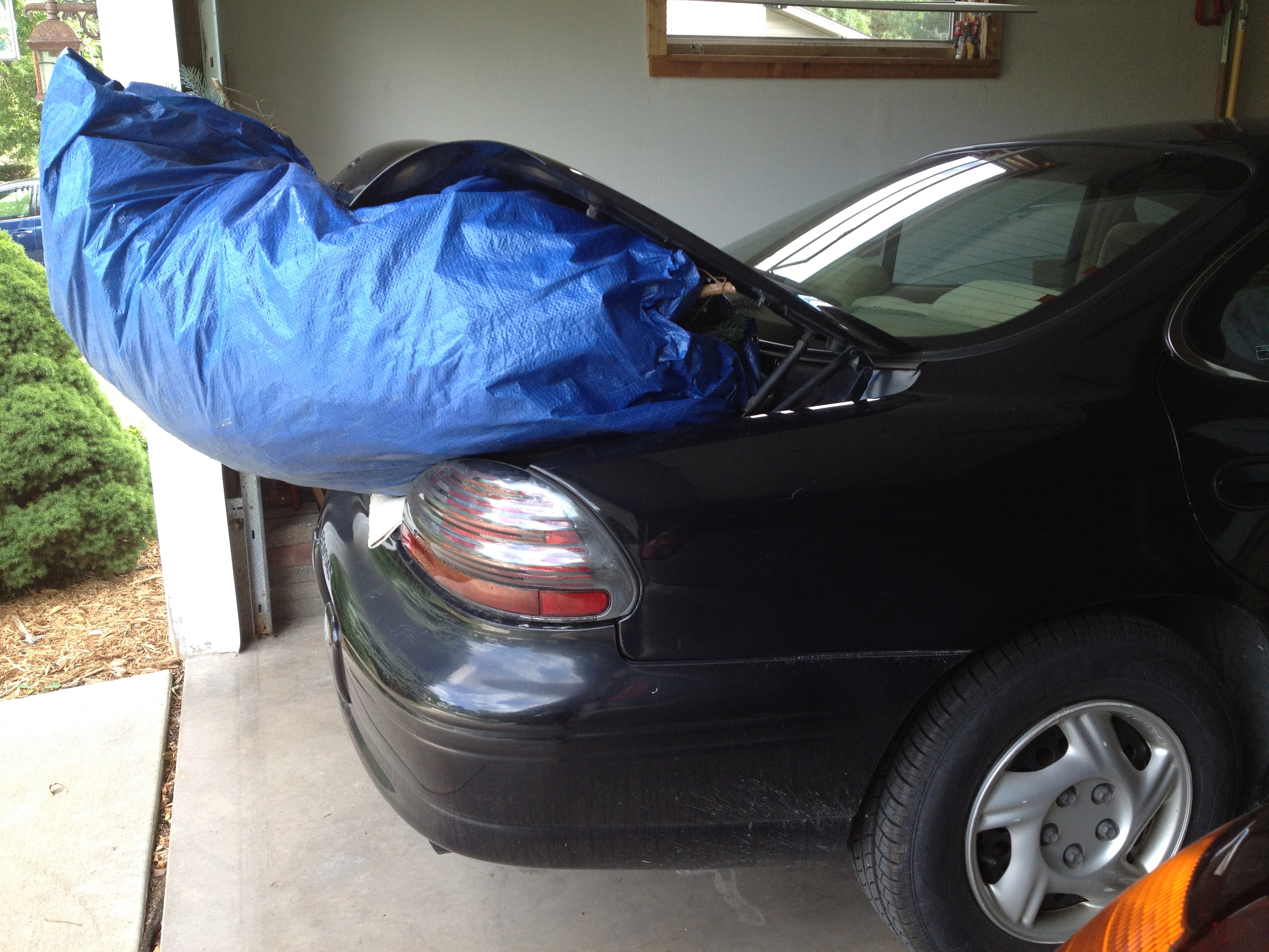 We did some major trimming on a blue spruce tree and our juniper shrubs, leaving us with a big pile to take to the community compost dump. My husband insisted the pile would fit in his trunk.