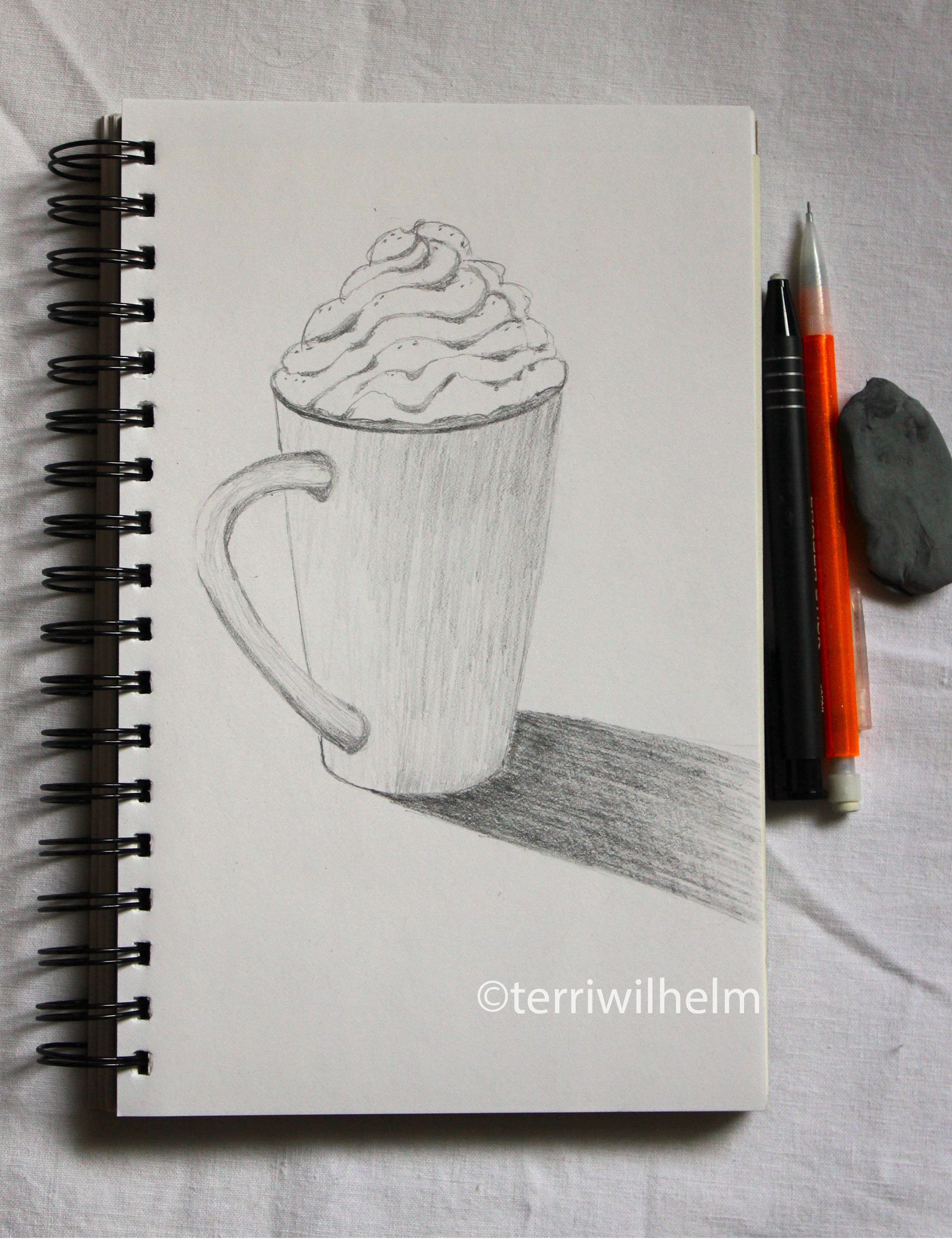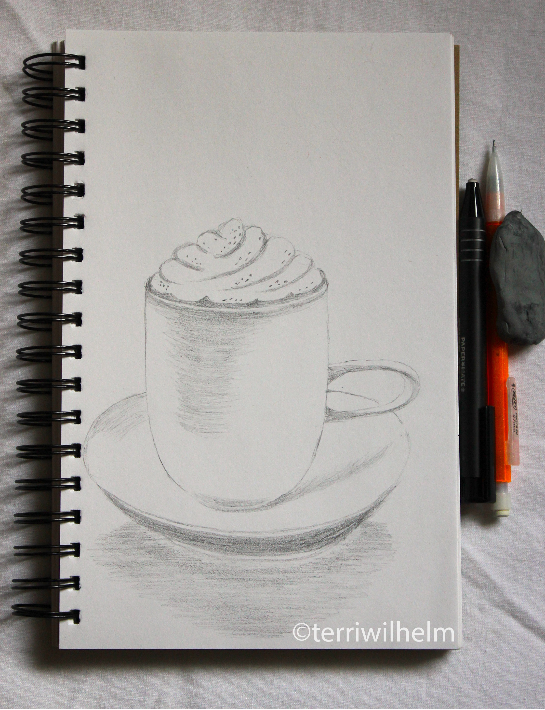 In addition to playing around in my sketchbook with watercolor illustrations, I’ve been making time for graphite drawings in another sketchbook. This week, I’ve been obsessed with drawing coffee mugs/lattes.