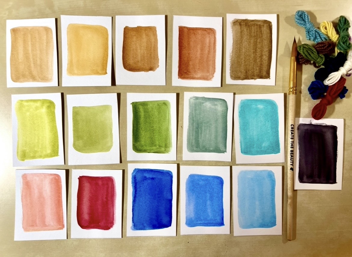 Next up are some of the color swatches I painted. A nature-inspired palette that captures the gentle rhythm of woodland wandering, from sunlit clearings to shaded forest floors. Warm earth tones—soft sand, honeyed ochre, and rich bark browns—ground the collection, evoking tree trunks, fallen leaves, and sun-warmed soil.