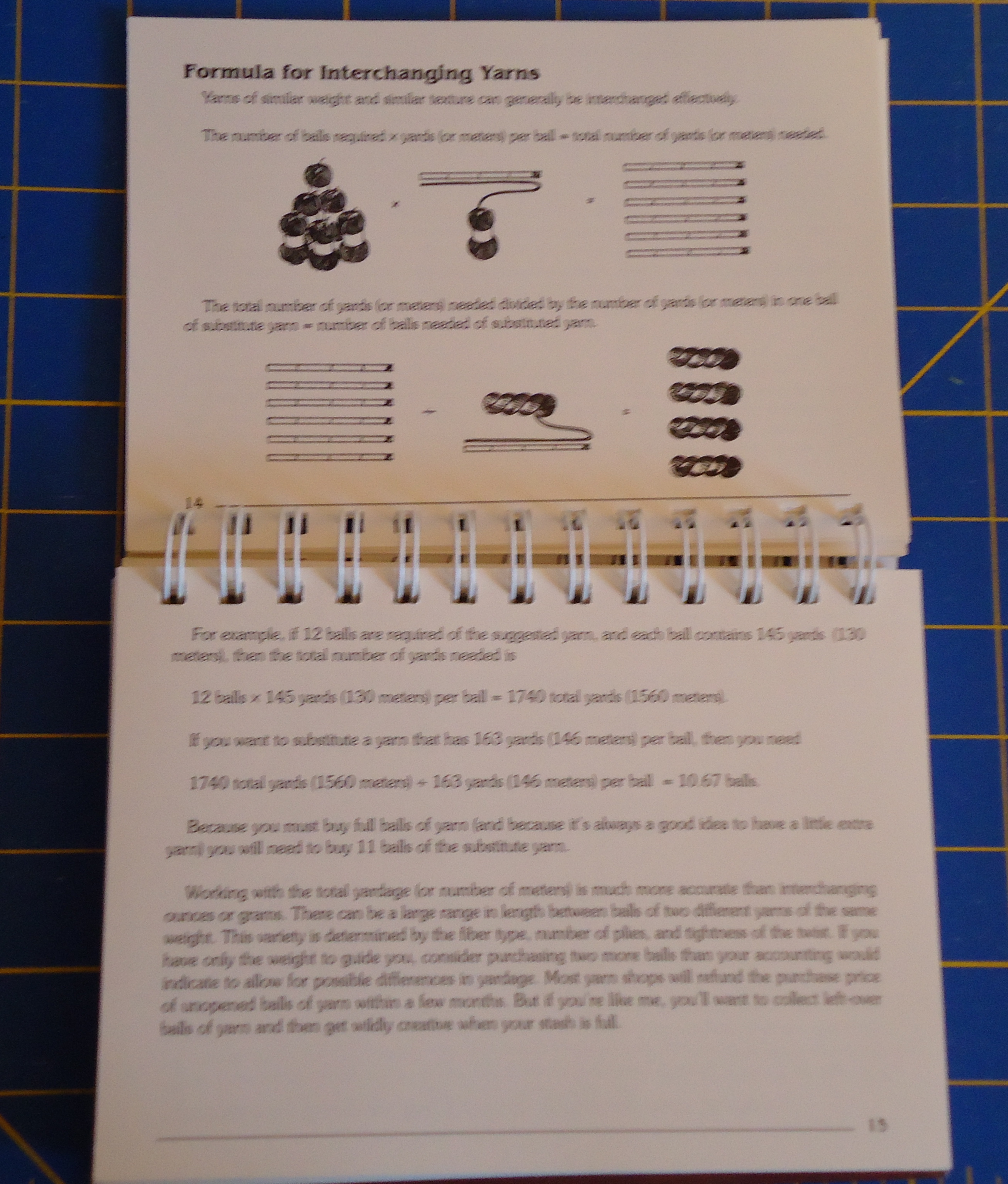 I always need help figuring out how to interchange yarns, since I often don’t have access to the yarn used in a pattern. So I especially love those particular pages!