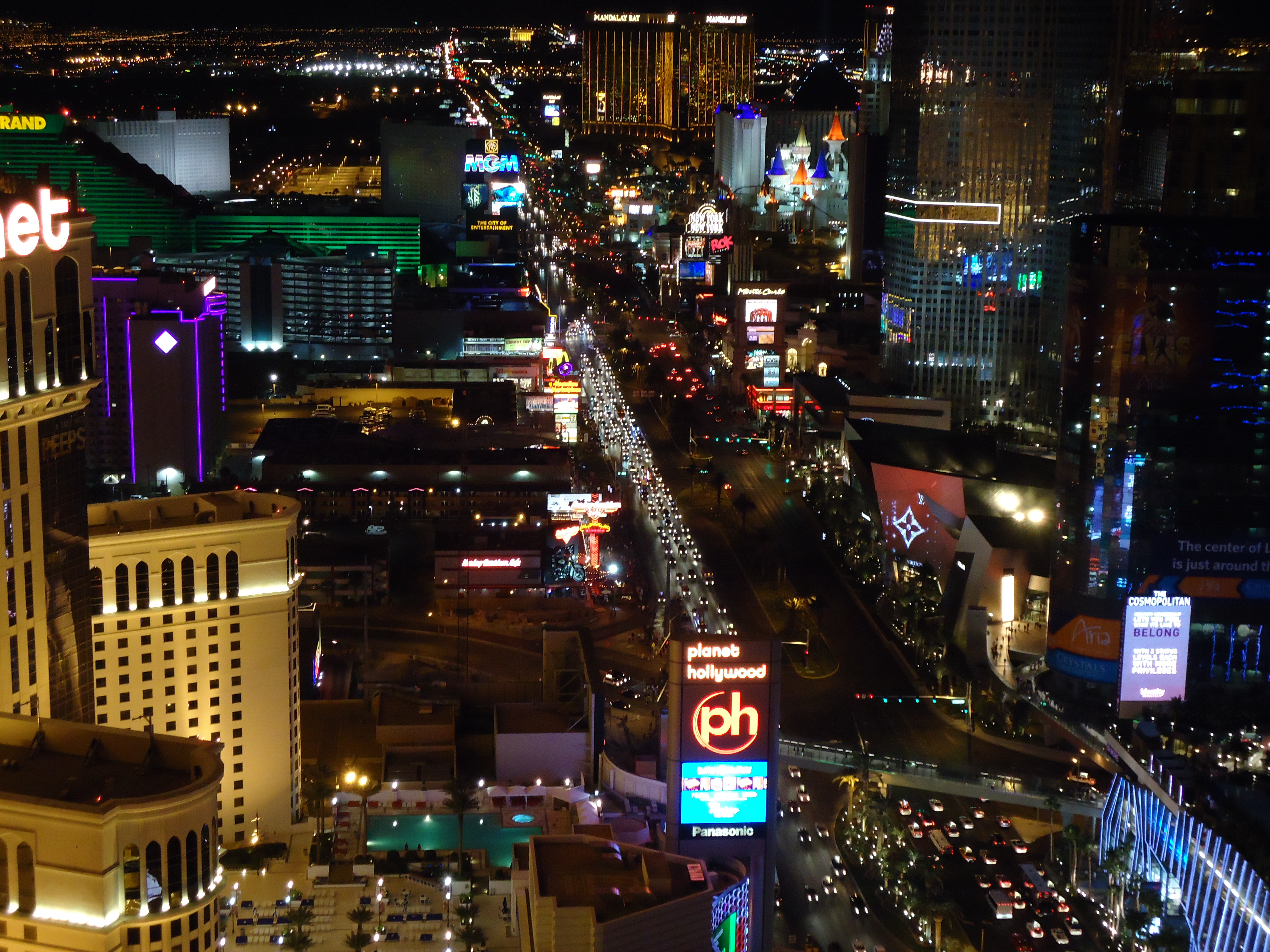 We rode to the top of the Eiffel Tower to see some fabulous views of the strip at night. Definitely get a 2-for-1 coupon if you try this.