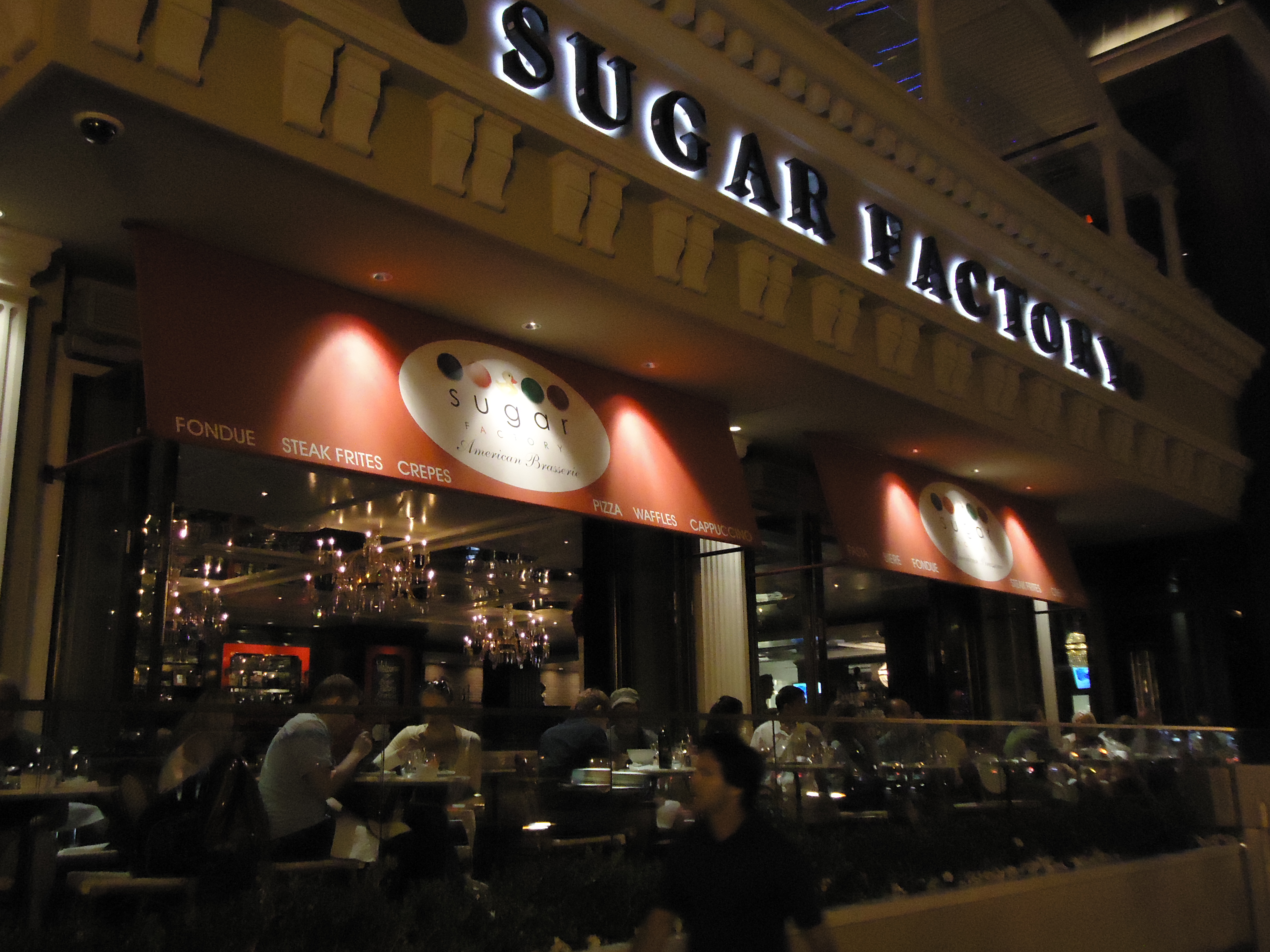 We at and drank at the Sugar Factory many times, since it was attached to the Paris casino, and we always walked past it on our way out of the hotel. The best place for people watching is at one of those outside tables.