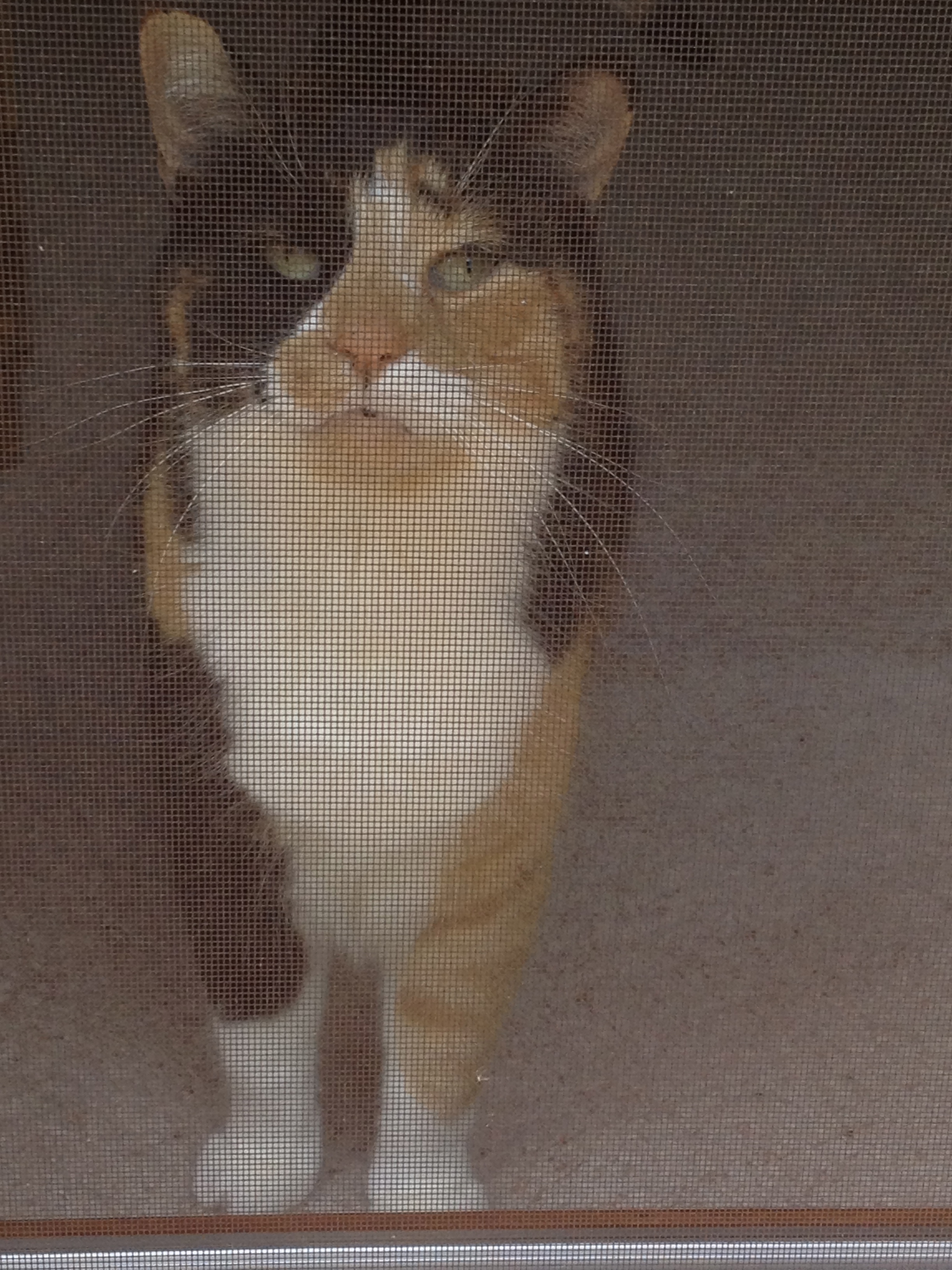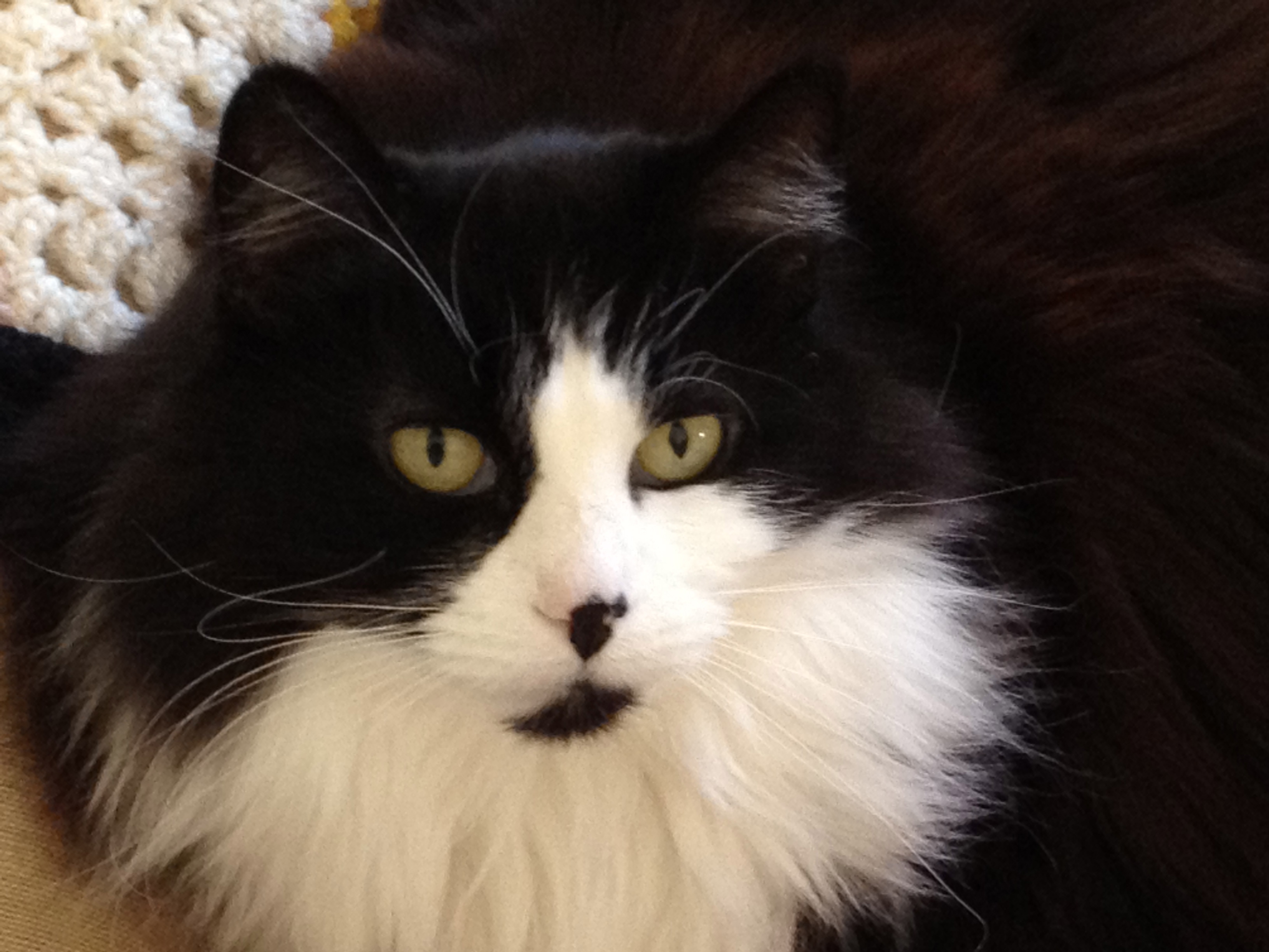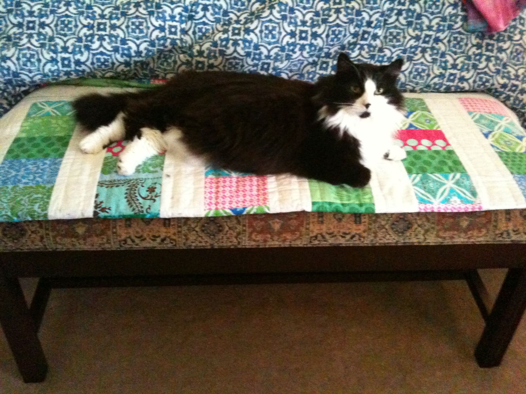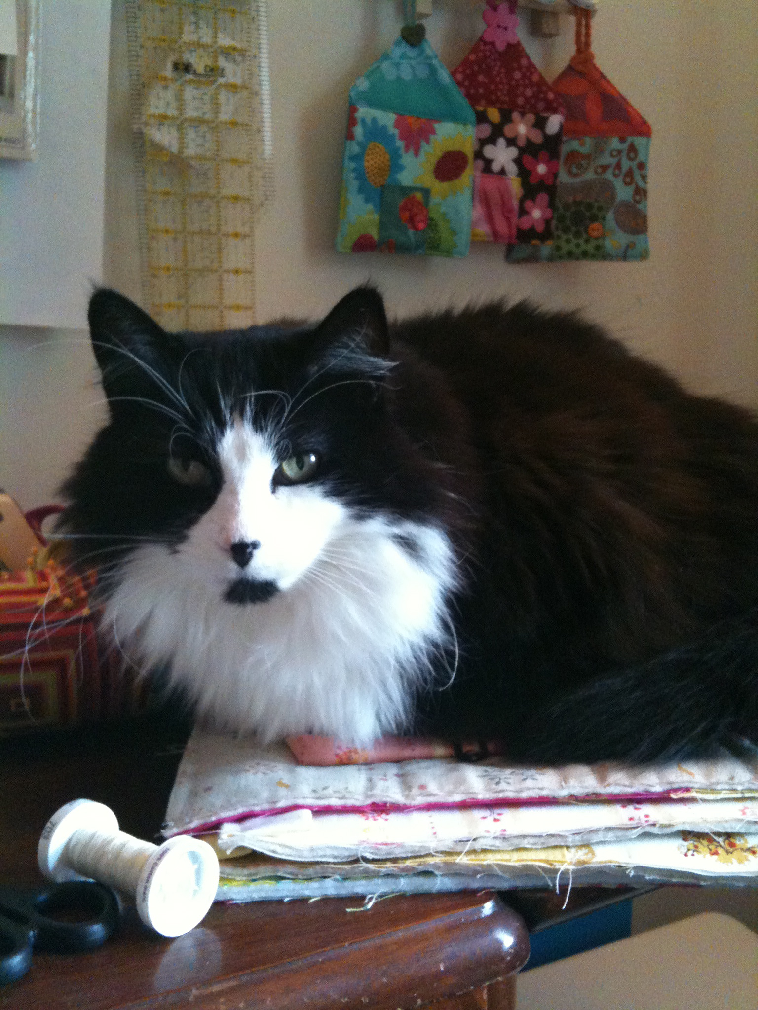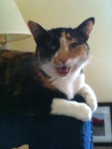 She is so much fun to have around. She loves to sit on my lap.all.the.time. She follows me around like a shadow. She is a good mouser, finding mice when they get into our basement. She’s not interested in any people food, but she loves to lick the salt off chips and popcorn. She loves to do big paws, aka kneading, on her fleece blanket. She loves to lay on my clothes. She loves to sit in boxes. She talks a lot. (for a cat)