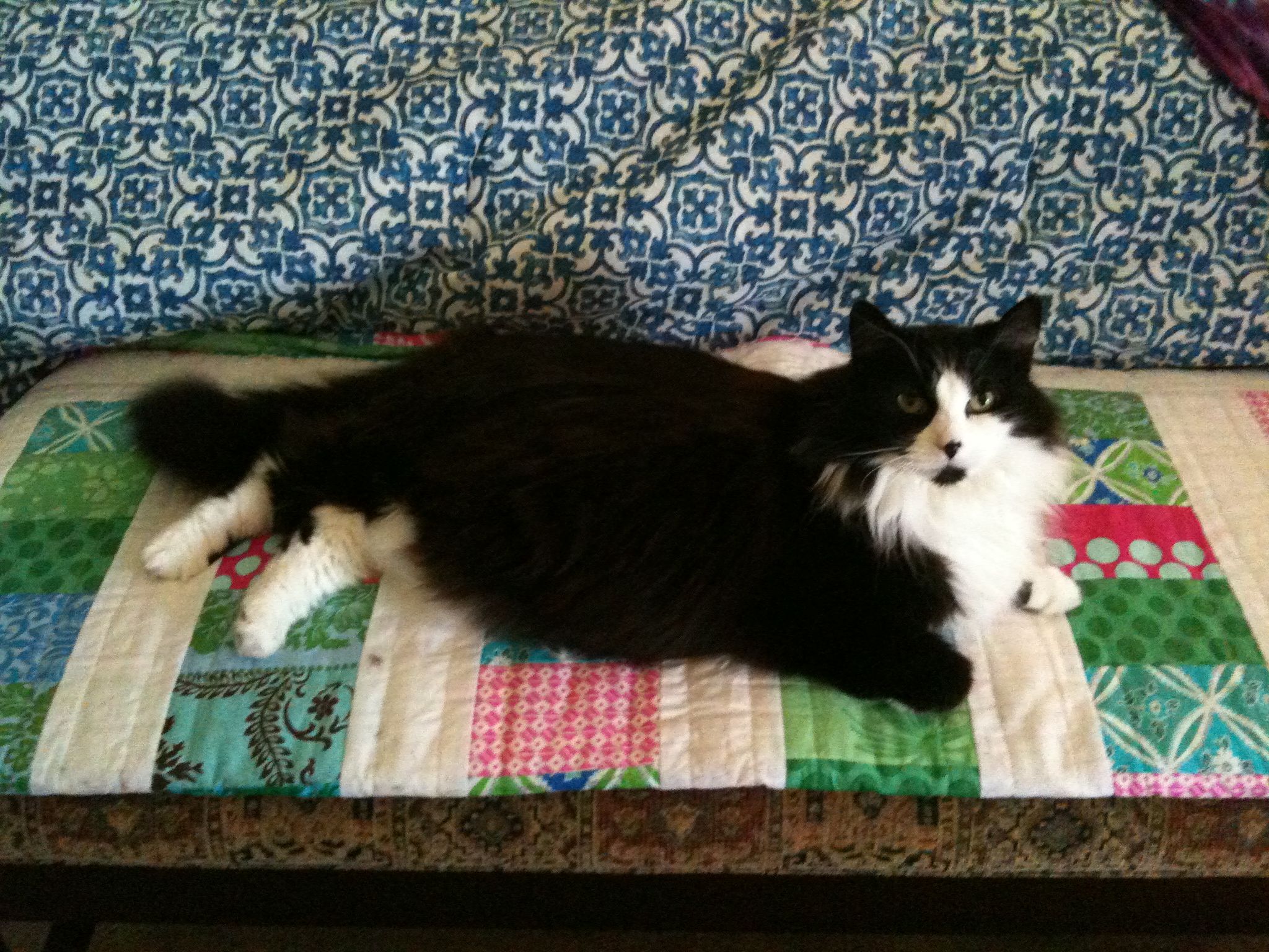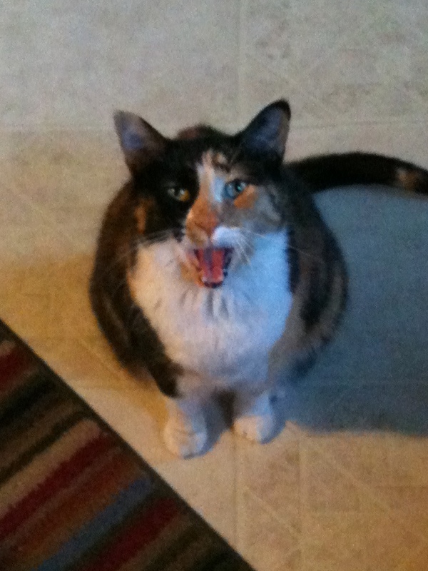 She is so much fun to have around. She loves to sit on my lap.all.the.time. She follows me around like a shadow. She is a good mouser, finding mice when they get into our basement. She’s not interested in any people food, but she loves to lick the salt off chips and popcorn. She loves to do big paws, aka kneading, on her fleece blanket. She loves to lay on my clothes. She loves to sit in boxes. She talks a lot. (for a cat)