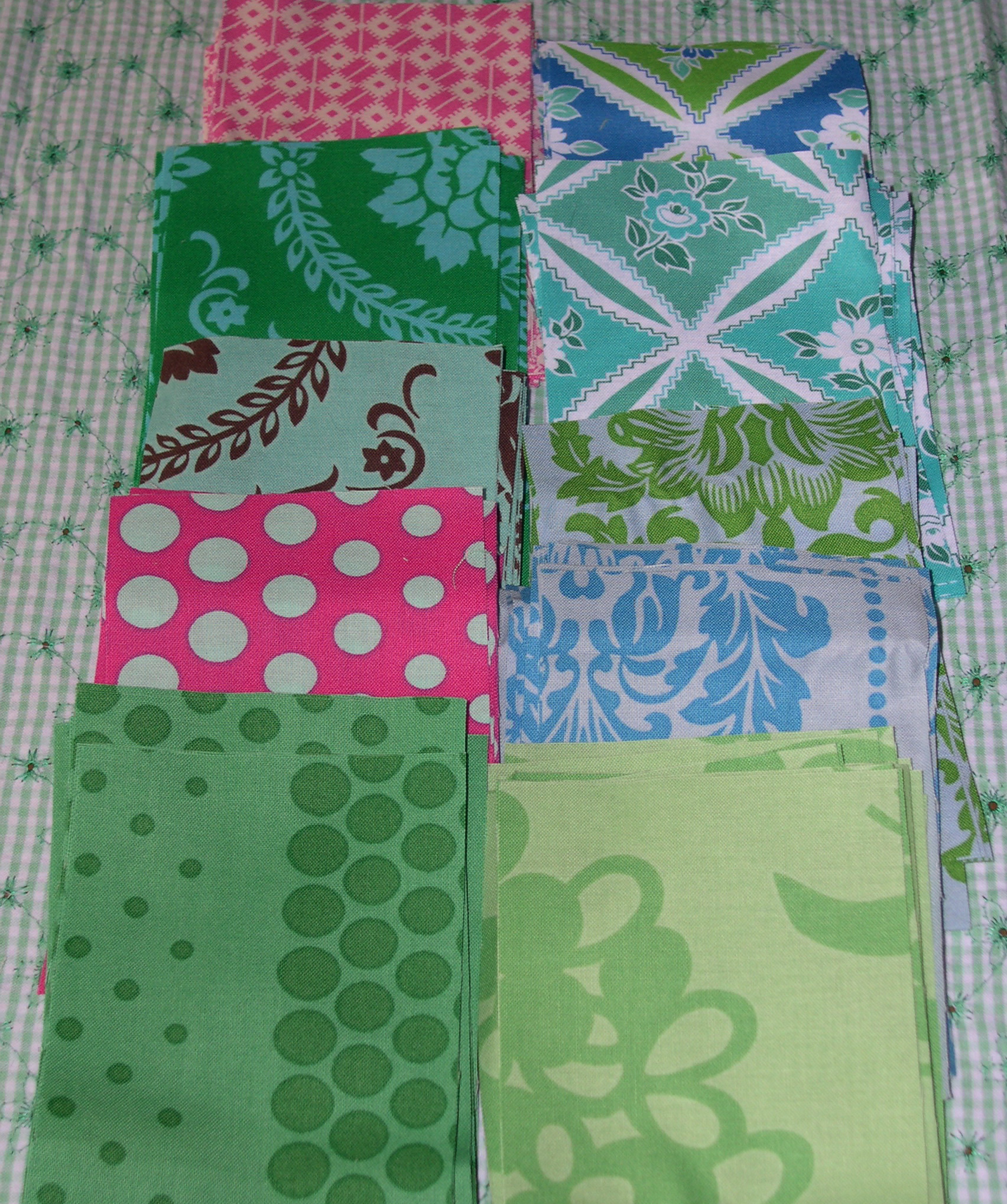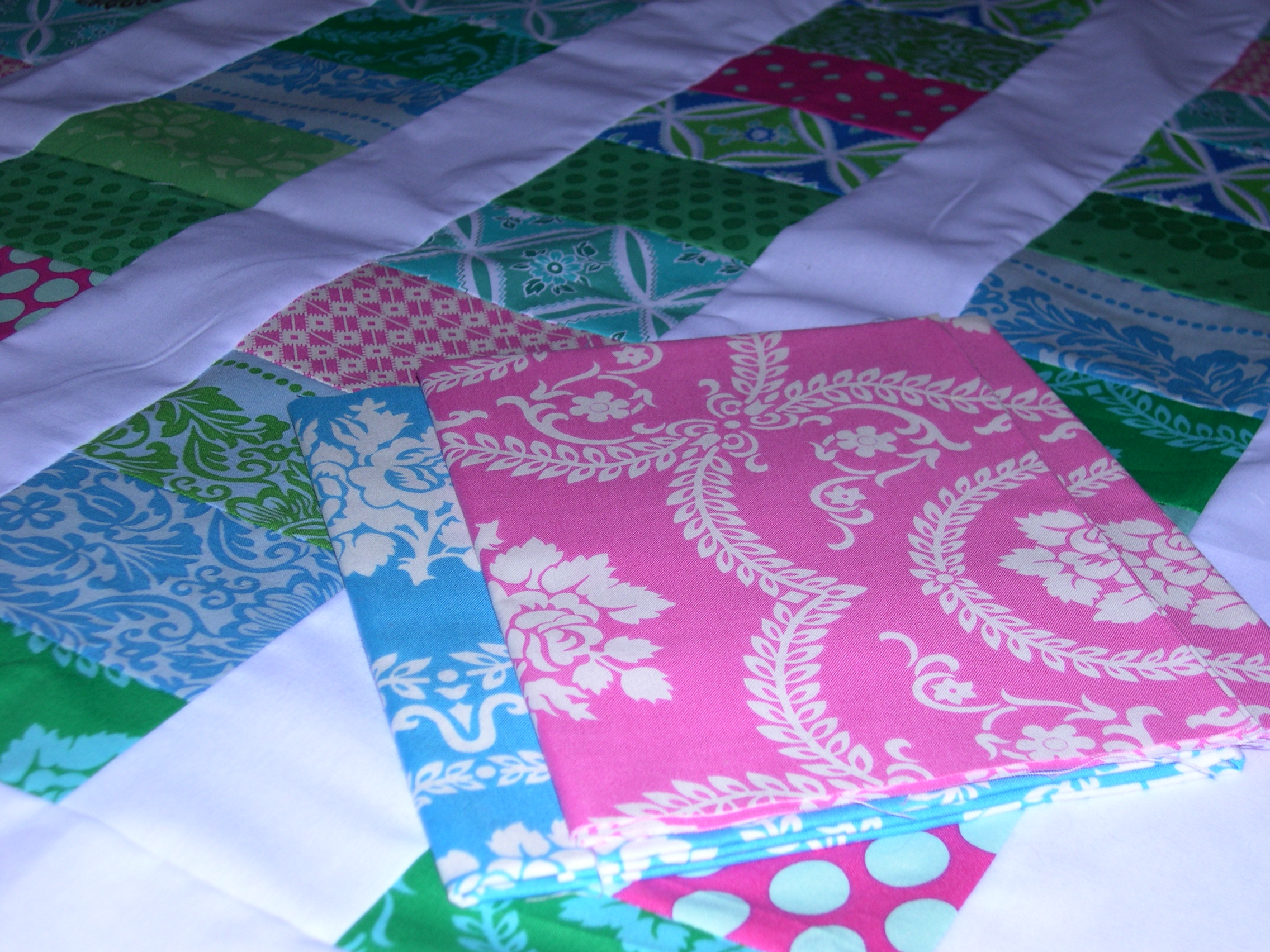 I really love the colors of these fabrics because they remind me of sea glass, which I have only seen in magazines.