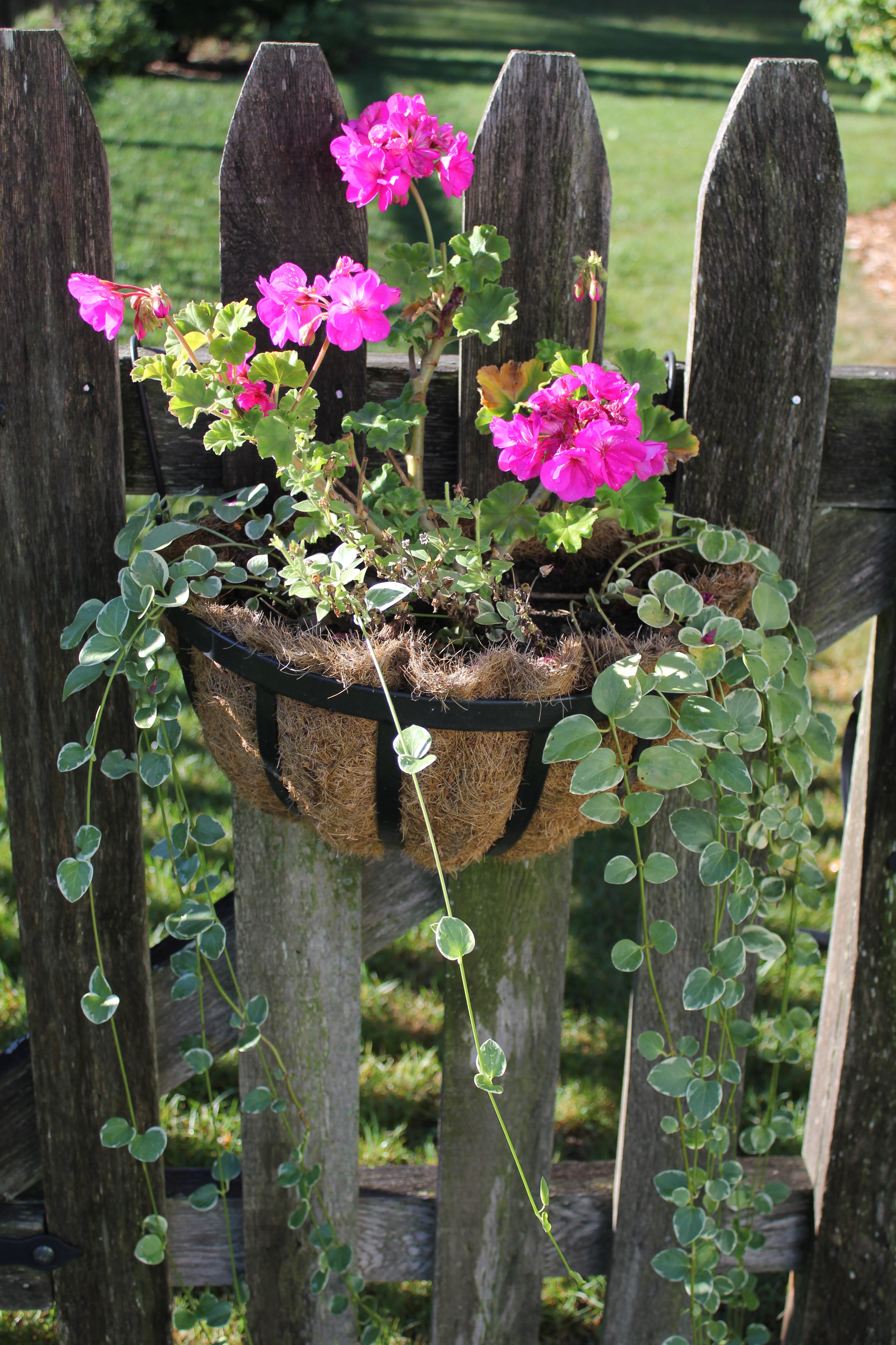 Every year, we fill baskets hanging on our backyard fence with a coco moss liner and a few plants. They look so welcoming on the gates to get into our backyard.