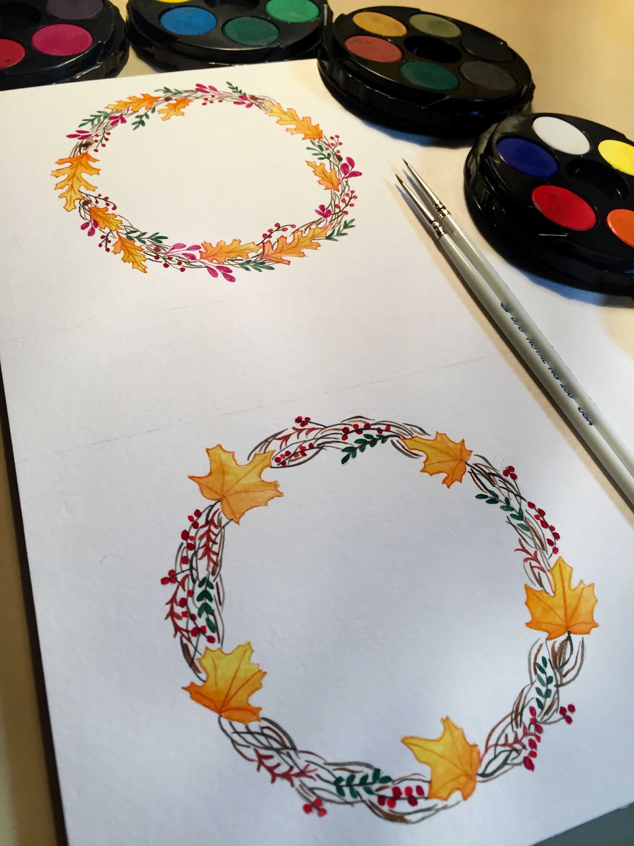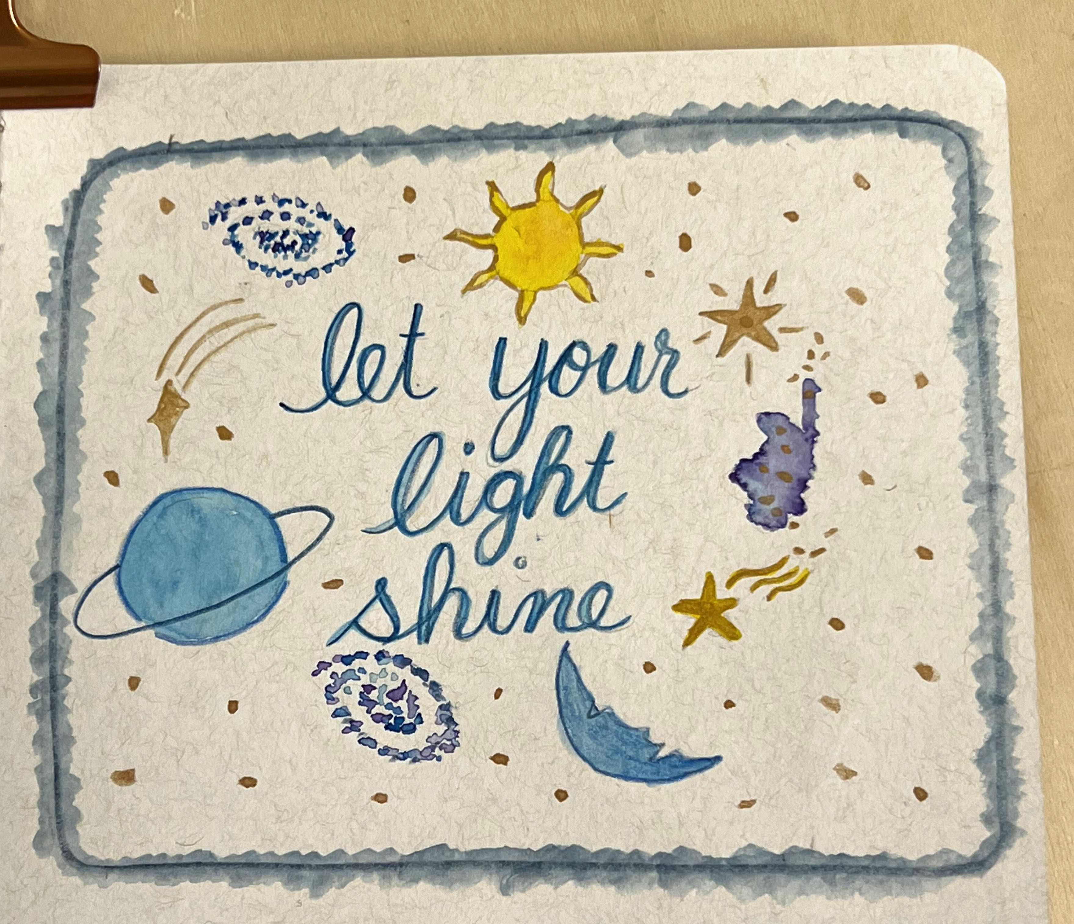 I had to experiment with some hand-lettering and a “wreath” of planets, stars and celestial icons floating around the sayings.