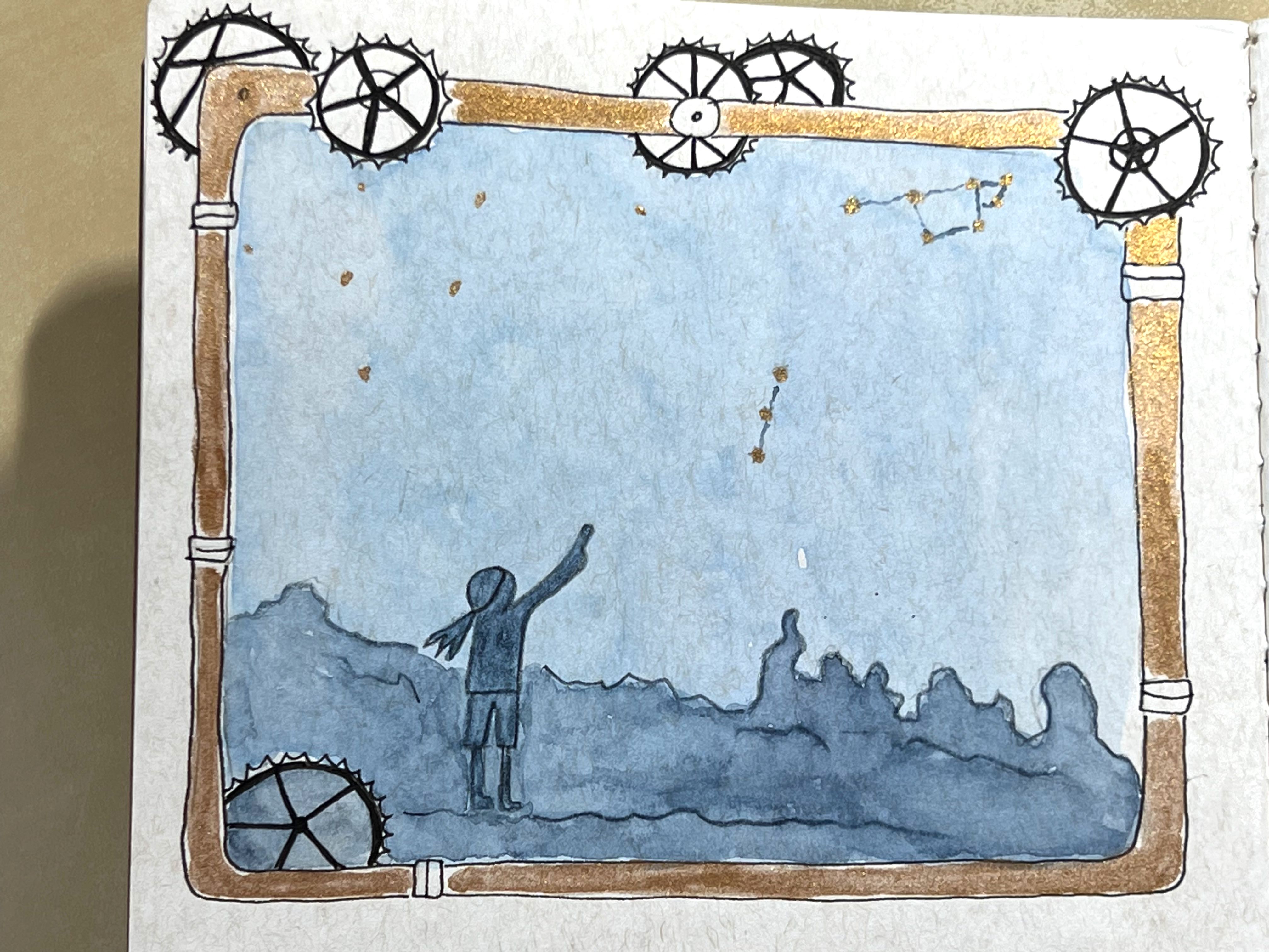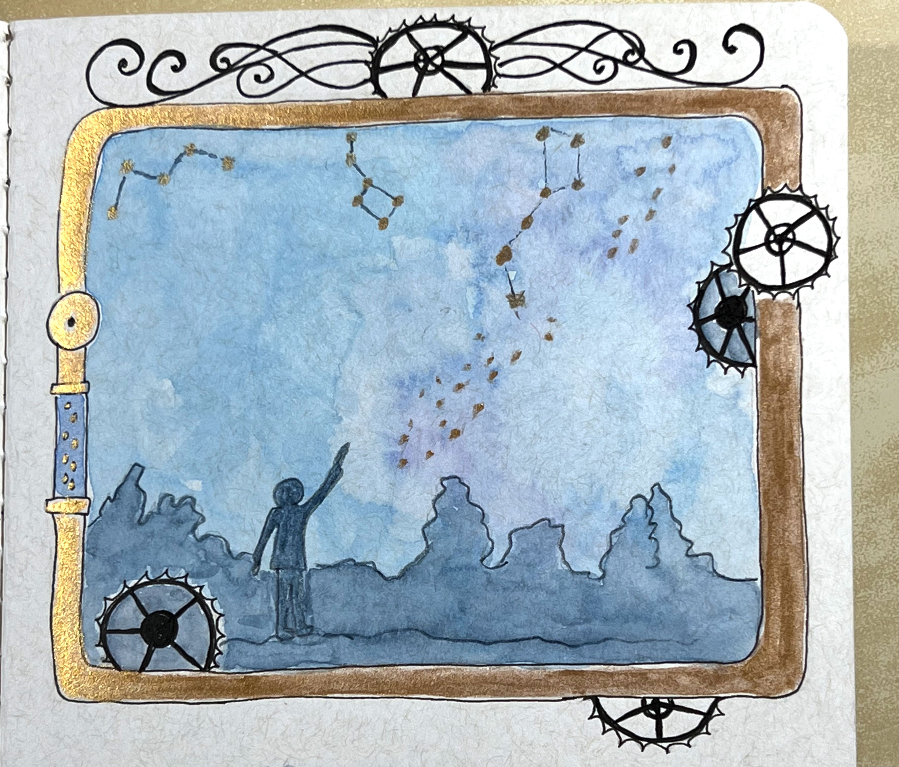 The latest art prompt I worked on was celestial. This prompt really resonated with me because I go outside every night the skies are clear to look at the moon and stars. I’ve been on a mission lately to learn more constellations.