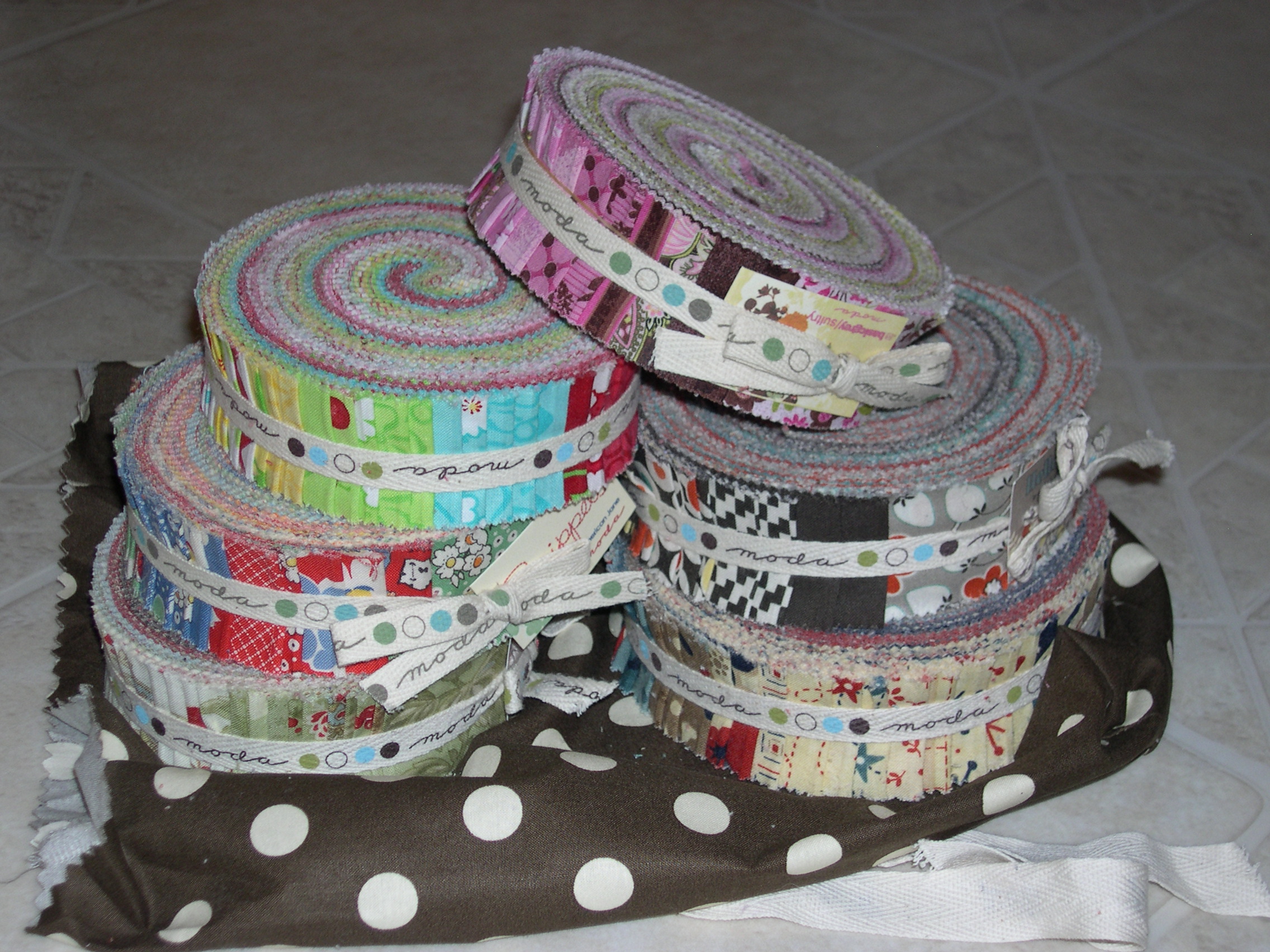 I had no idea so many people would want these items I had to offer, so I am excited to announce a couple winners! My first item up for grabs was this honey bun of Snippets fabrics by American Jane. (a honey bun is a collection of 1.5″ x 44″ strips of fabric)