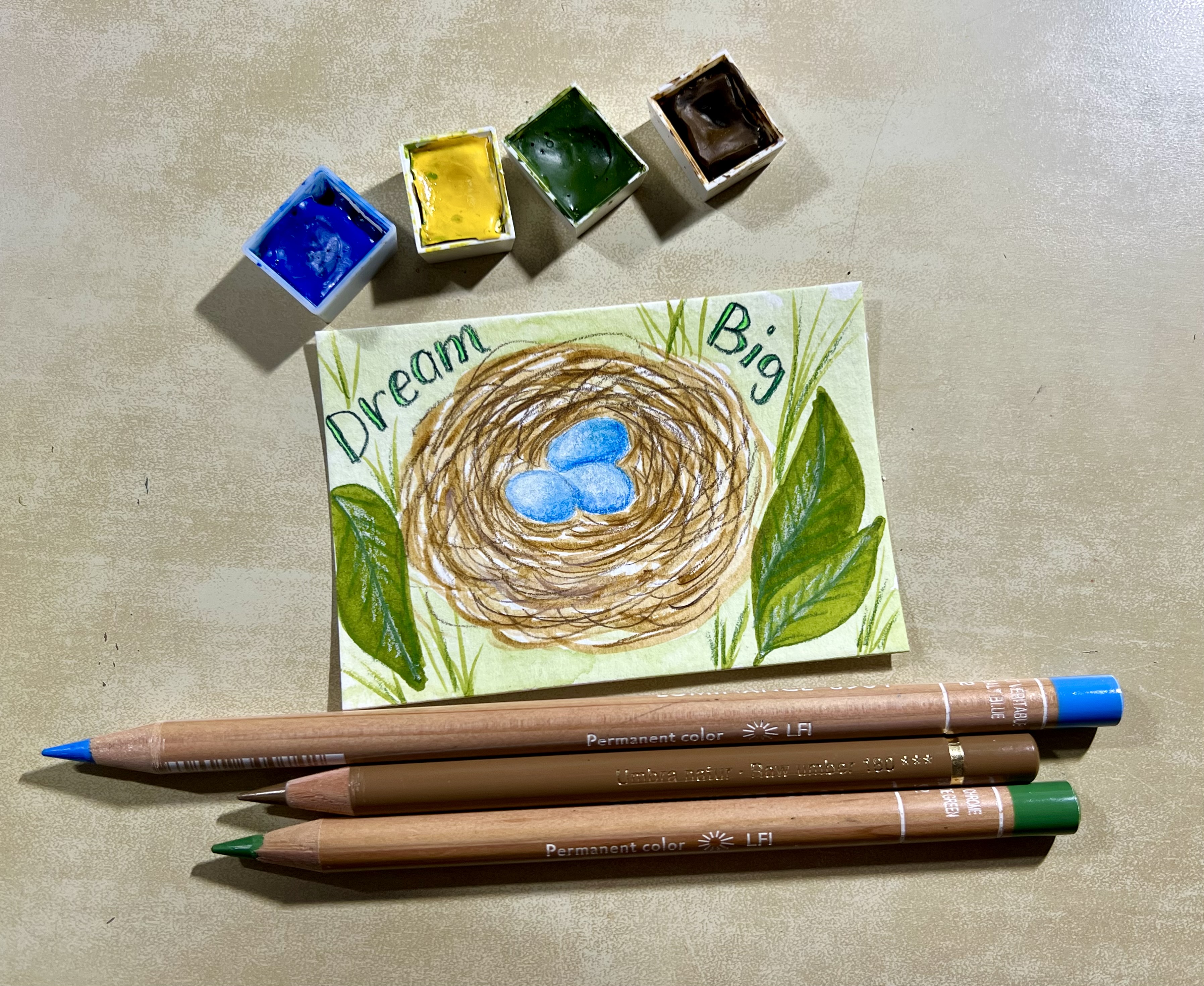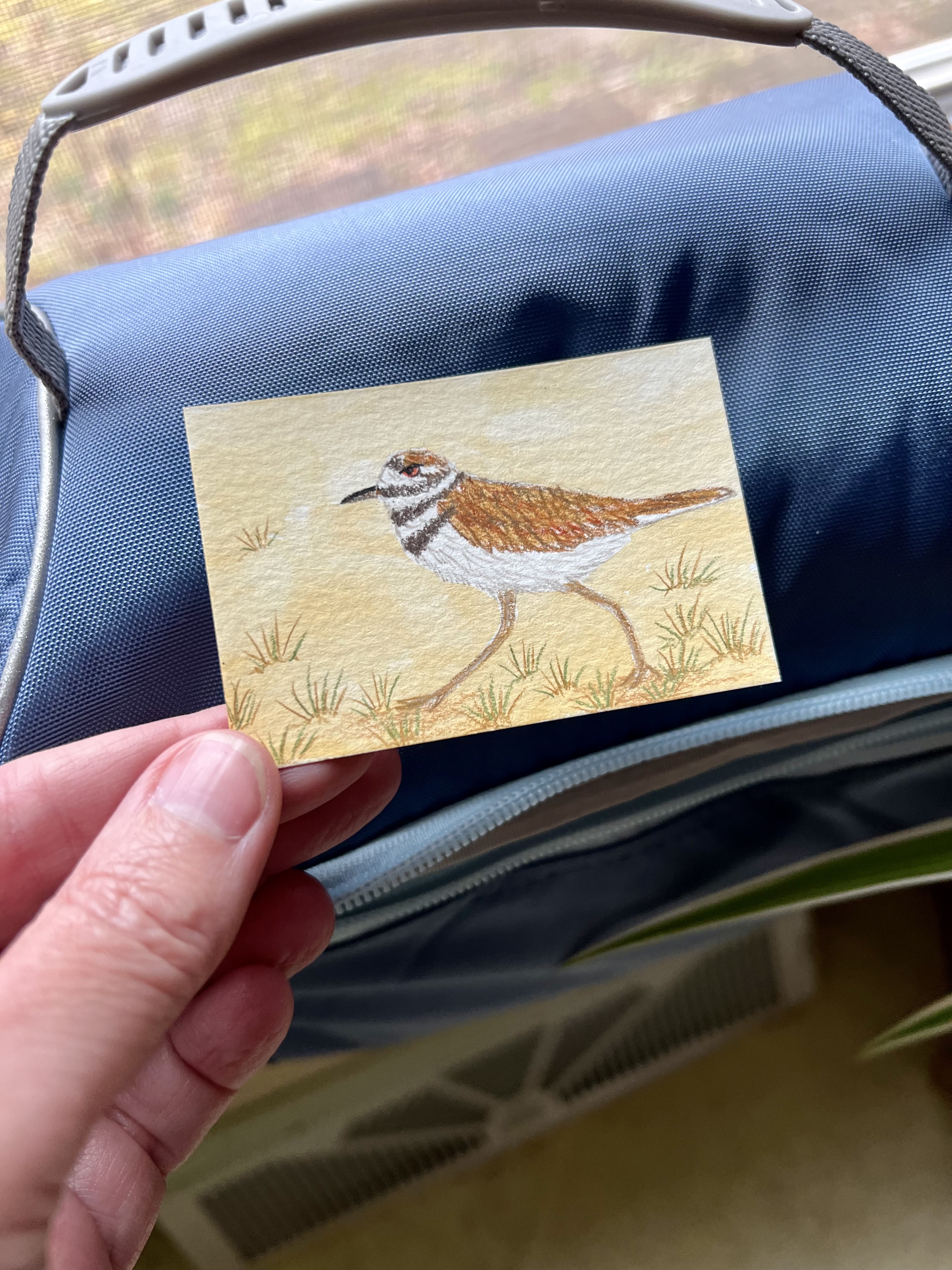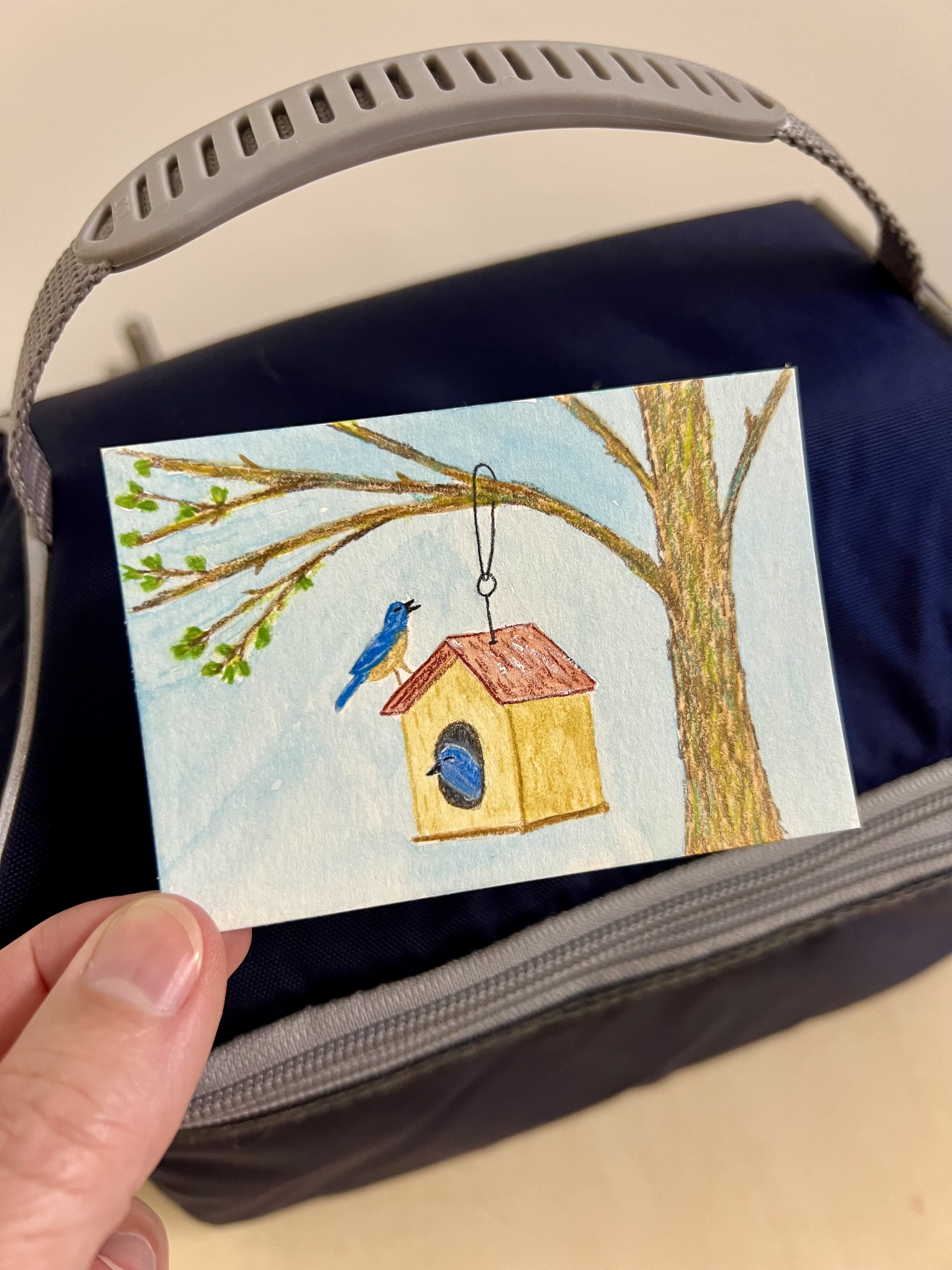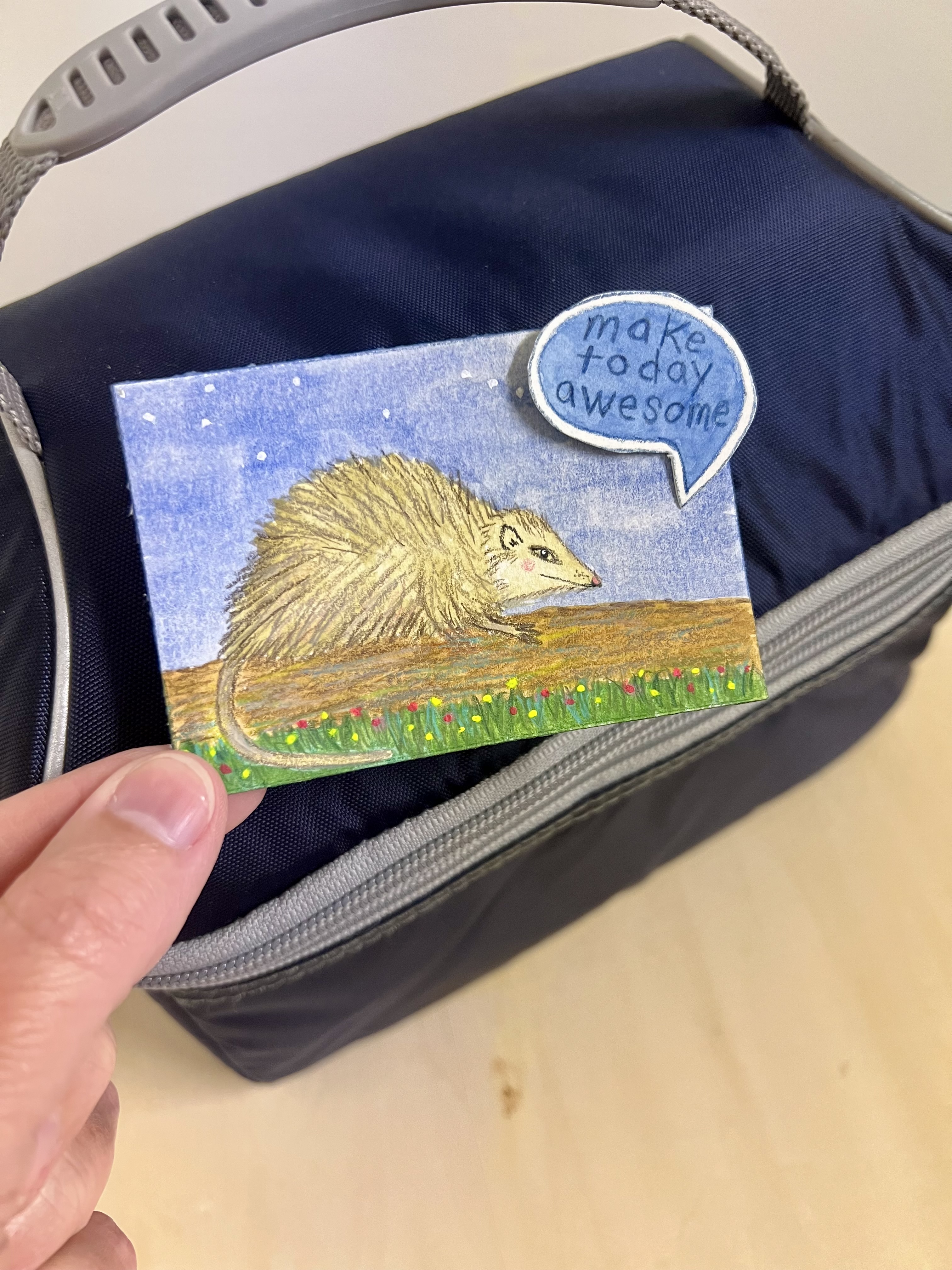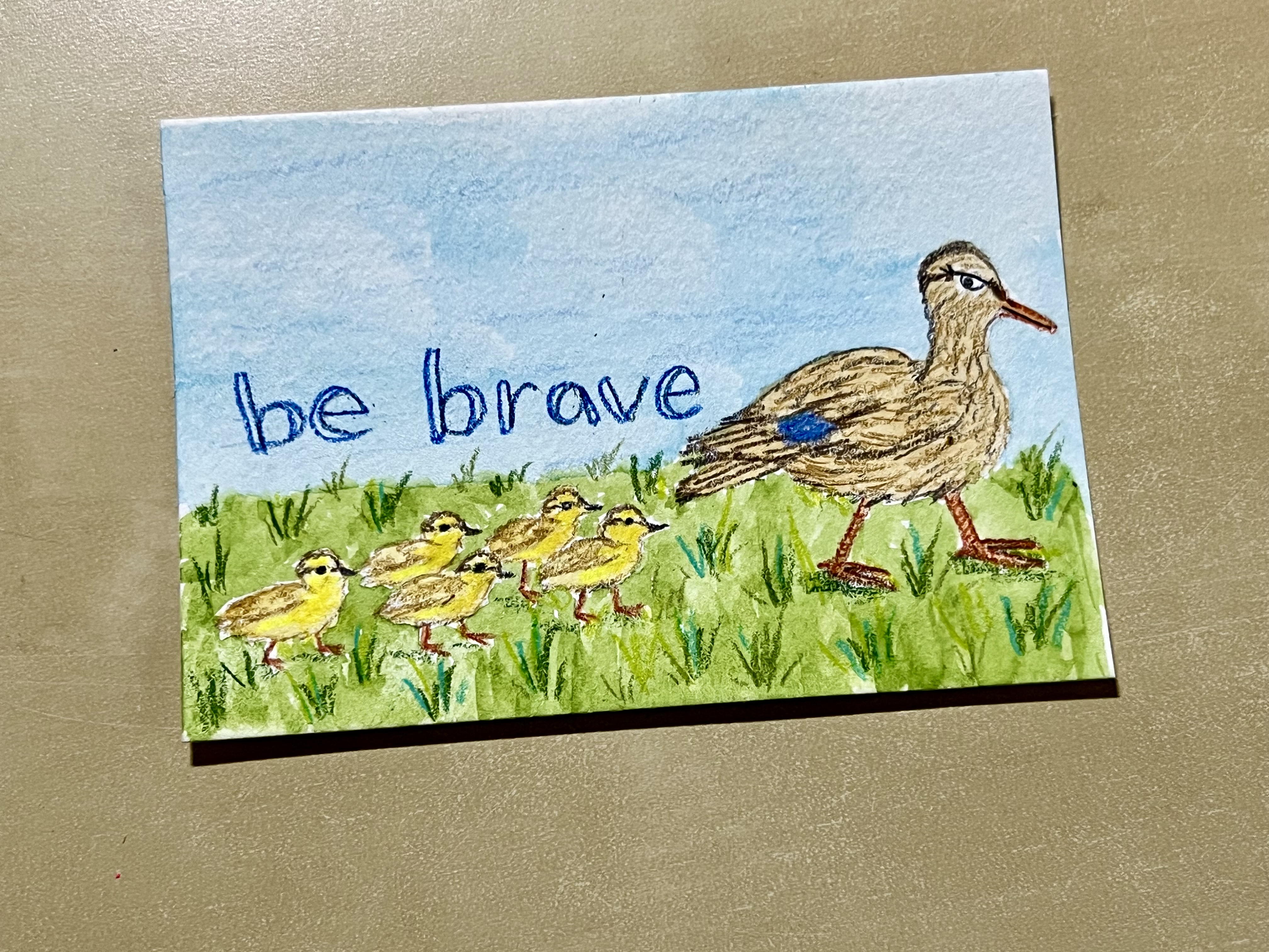 I found a pack of watercolor cards in my stash that are about the same size as a standard business card, a perfect canvas to whip up a little illustration and remind him he’s not alone.