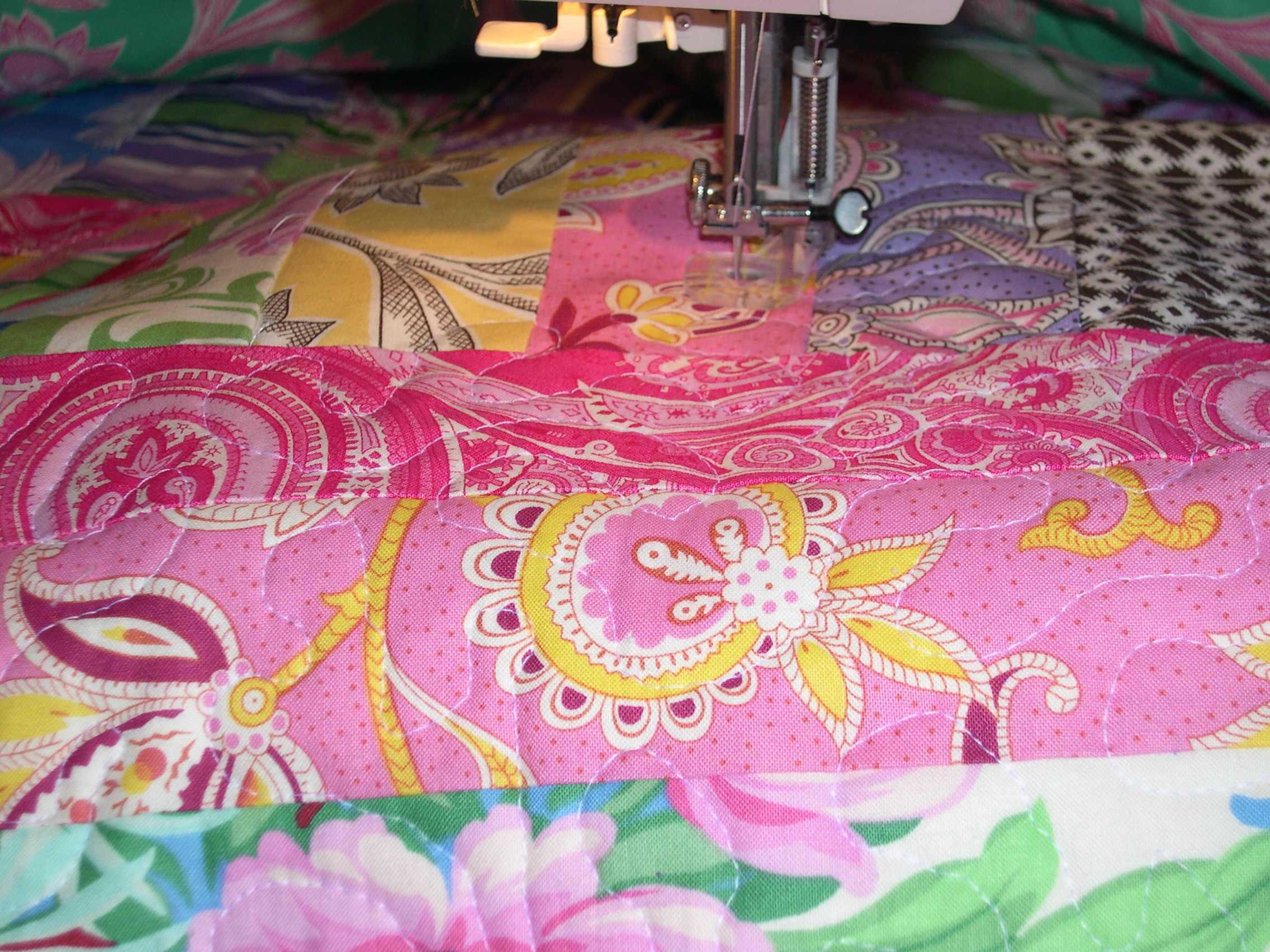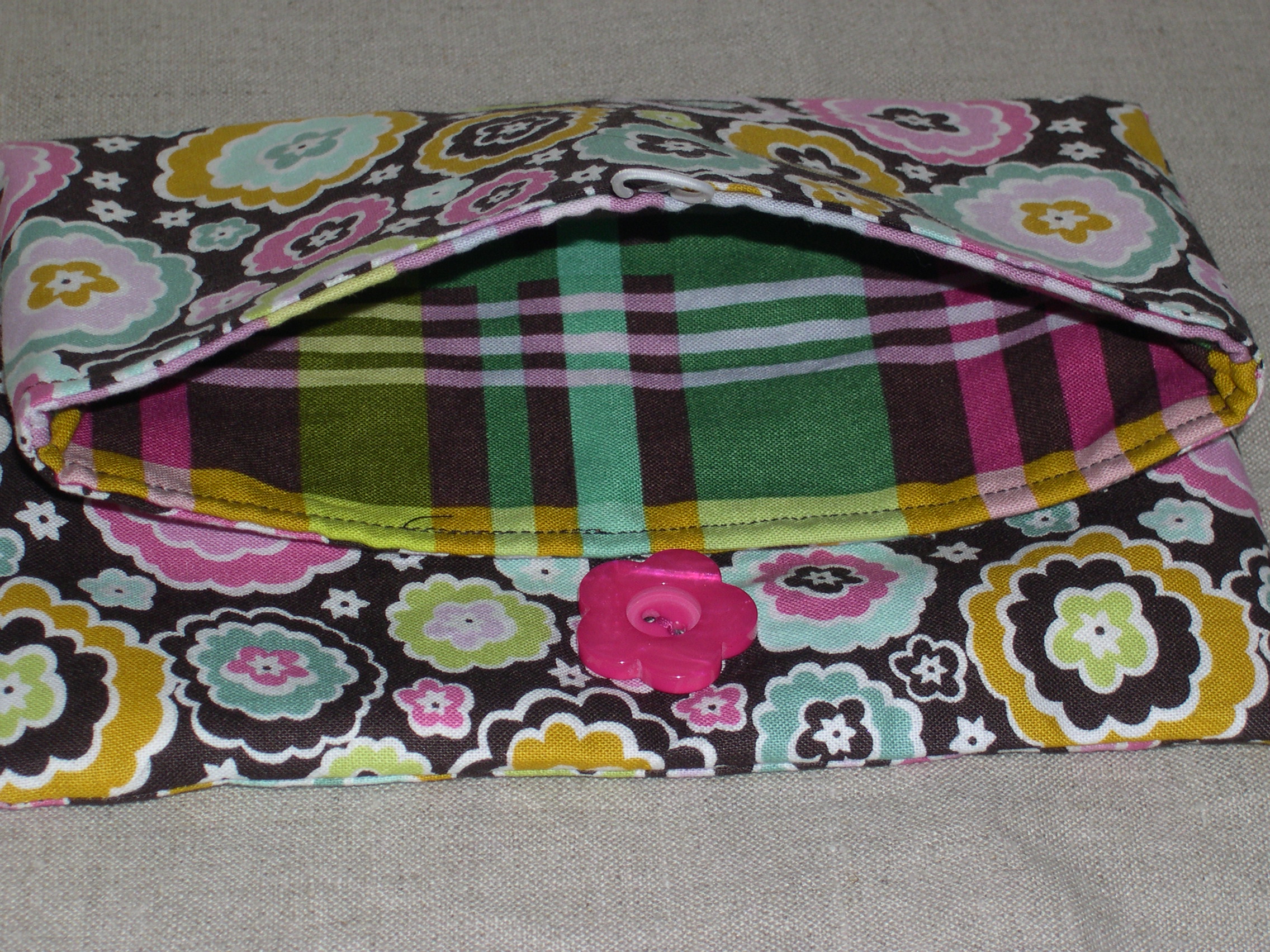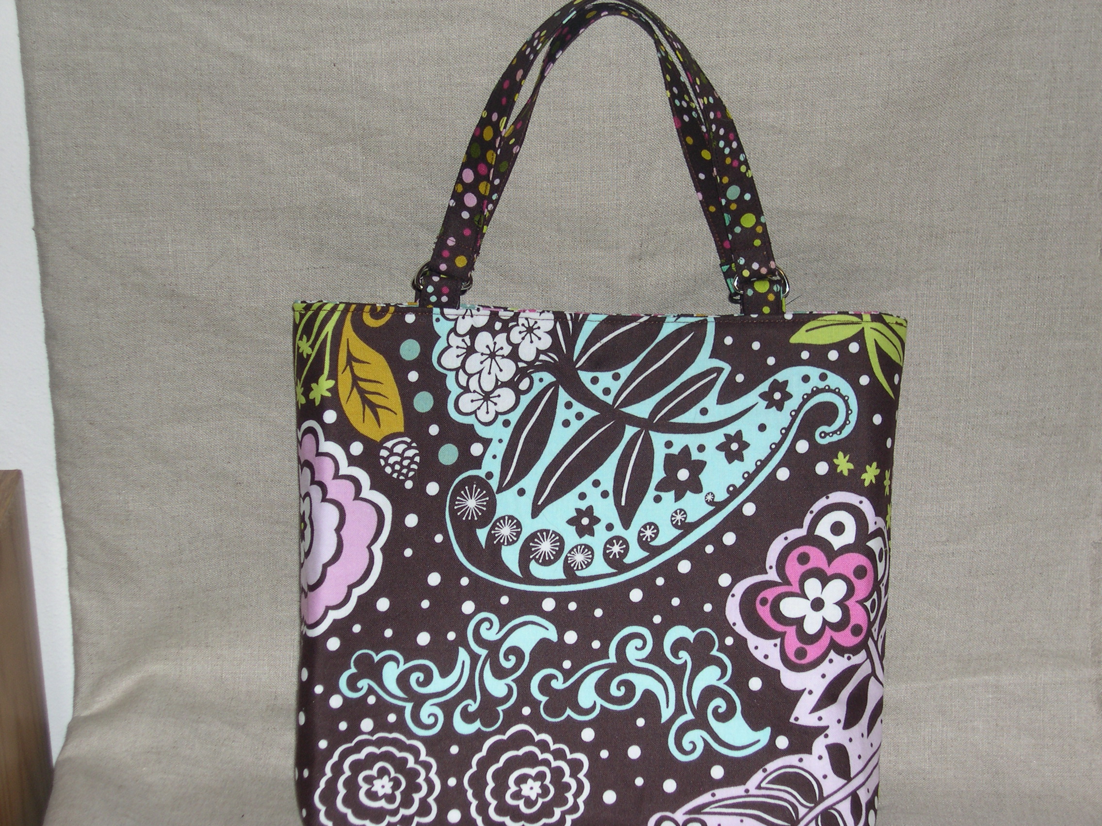 This one is just the ticket! I used a print from the Drawing Room home dec collection by Anna Maria Horner for the outside and a print from her Garden Party collection for the lining. I wish all home dec fabric were this soft and lovely to work with! Hmm, wonder if she has plans to do more home dec fabrics.