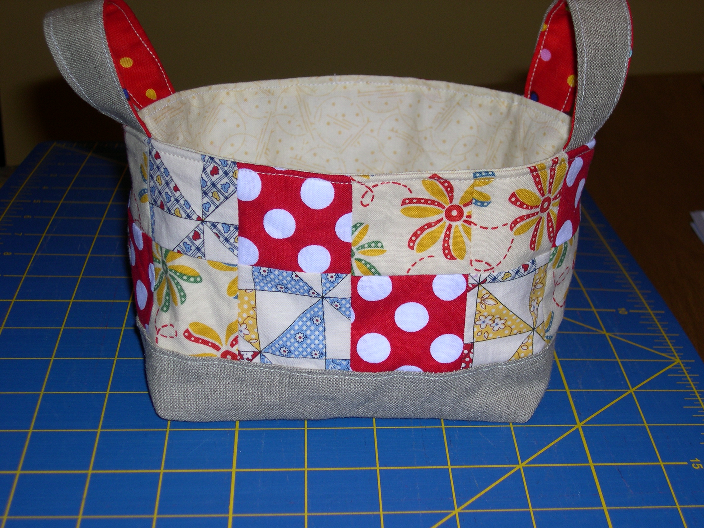 I love Melissa’s strapping bag because it looks like just my size. (I’m not big on large purses, or leather purses, or designer purses with initials on them.) I love the way she combined the light blue wale corduroy for the sides with the quilting cotton gusset and straps, which would also look cool as a pieced strap. The decorative stitching on the corduroy is just icing on the cake, and who doesn’t love icing on cake!