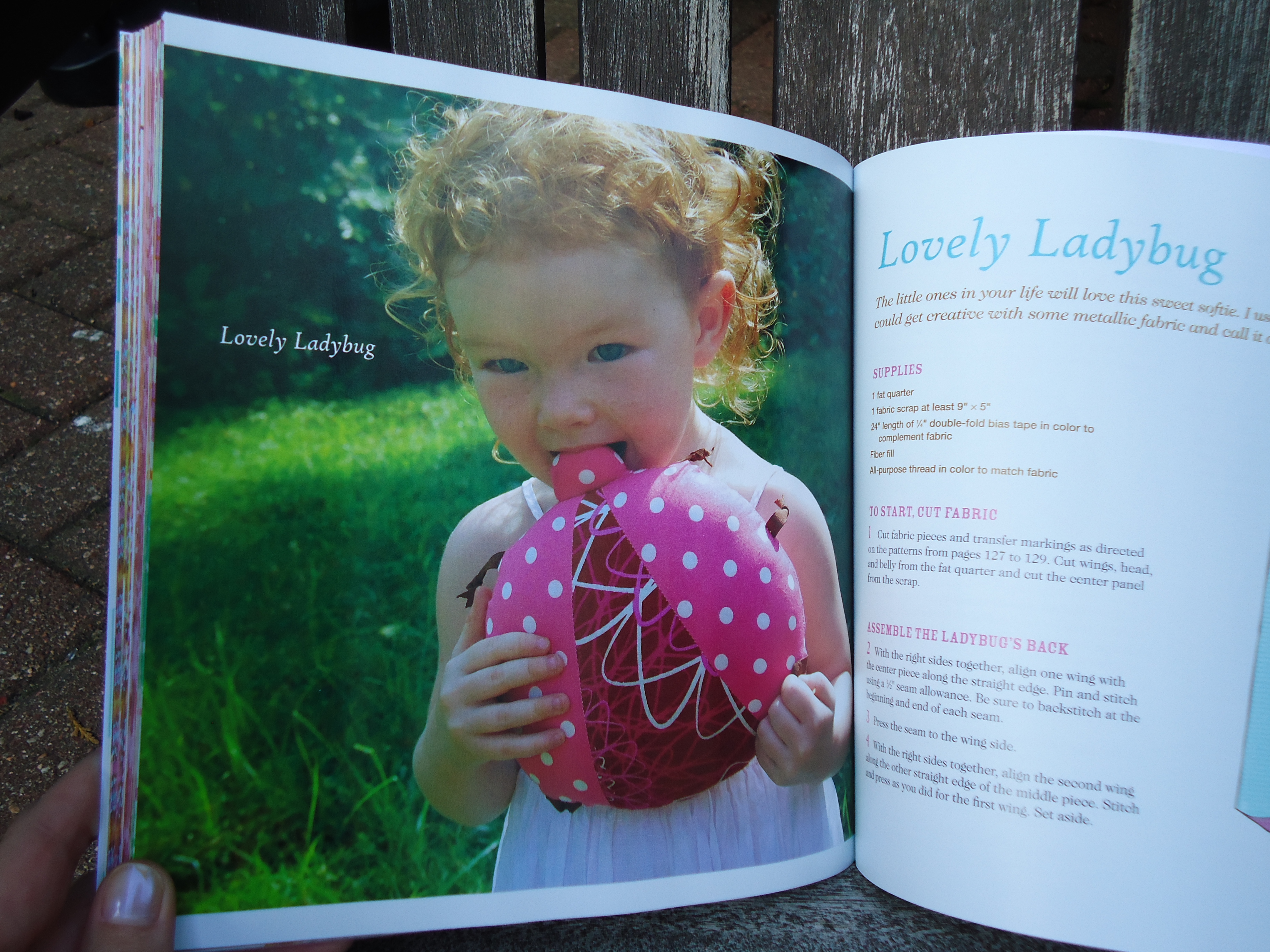 The For Kids section offers a precious pillowcase dress, a great jester crown for the boys, a yo-yo tiara for the girls, a magic cape, and the prettiest wrap skirt that is reversible. This little ladybug softie is adorable and could be used as a big pincushion. Ah, the imagination in this book is so fun!