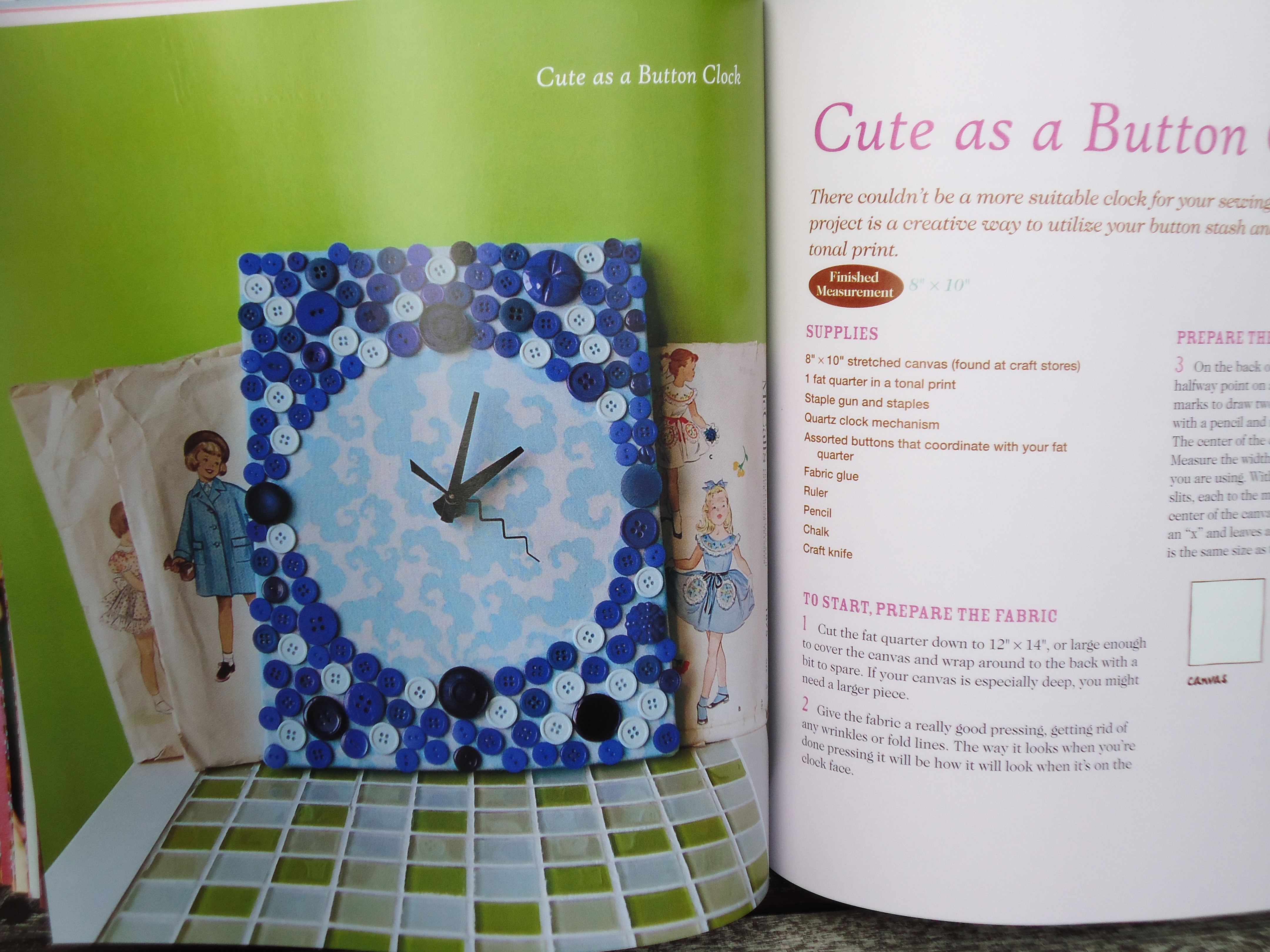 This Cute-as-a -Button-Clock is a fun way to show off a favorite fat quarter and coordinating buttons from your stash.