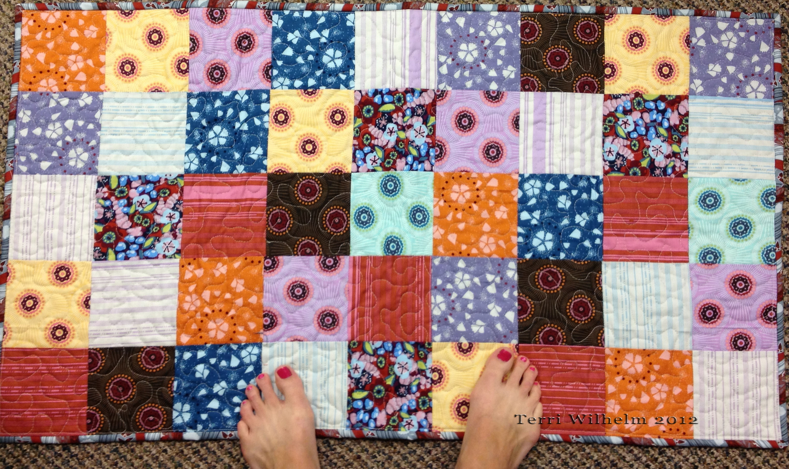 Lay the fabric circles on top of dresden ring, pin if necessary, and top-stitch to attach to ring of the wedges. I top-stitched twice to make sure it was secure.