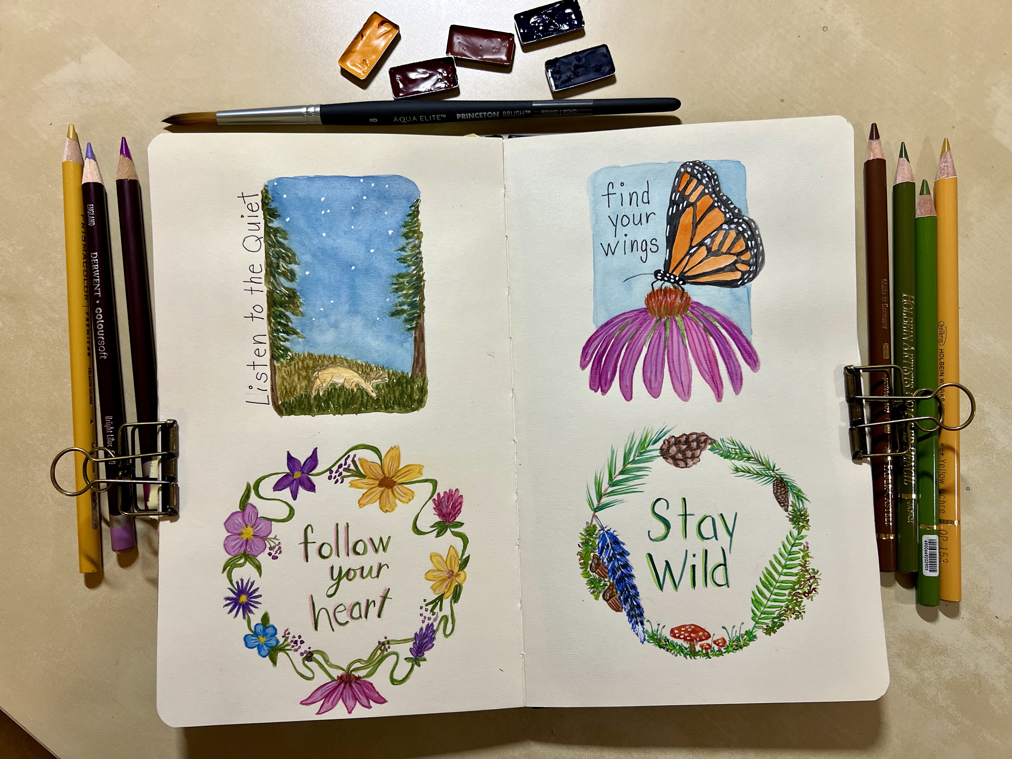 I recently saw a ruby-crowned kinglet in my yard for the first time. I wasn’t familiar with this bird so I loved learning about it by drawing and painting it.