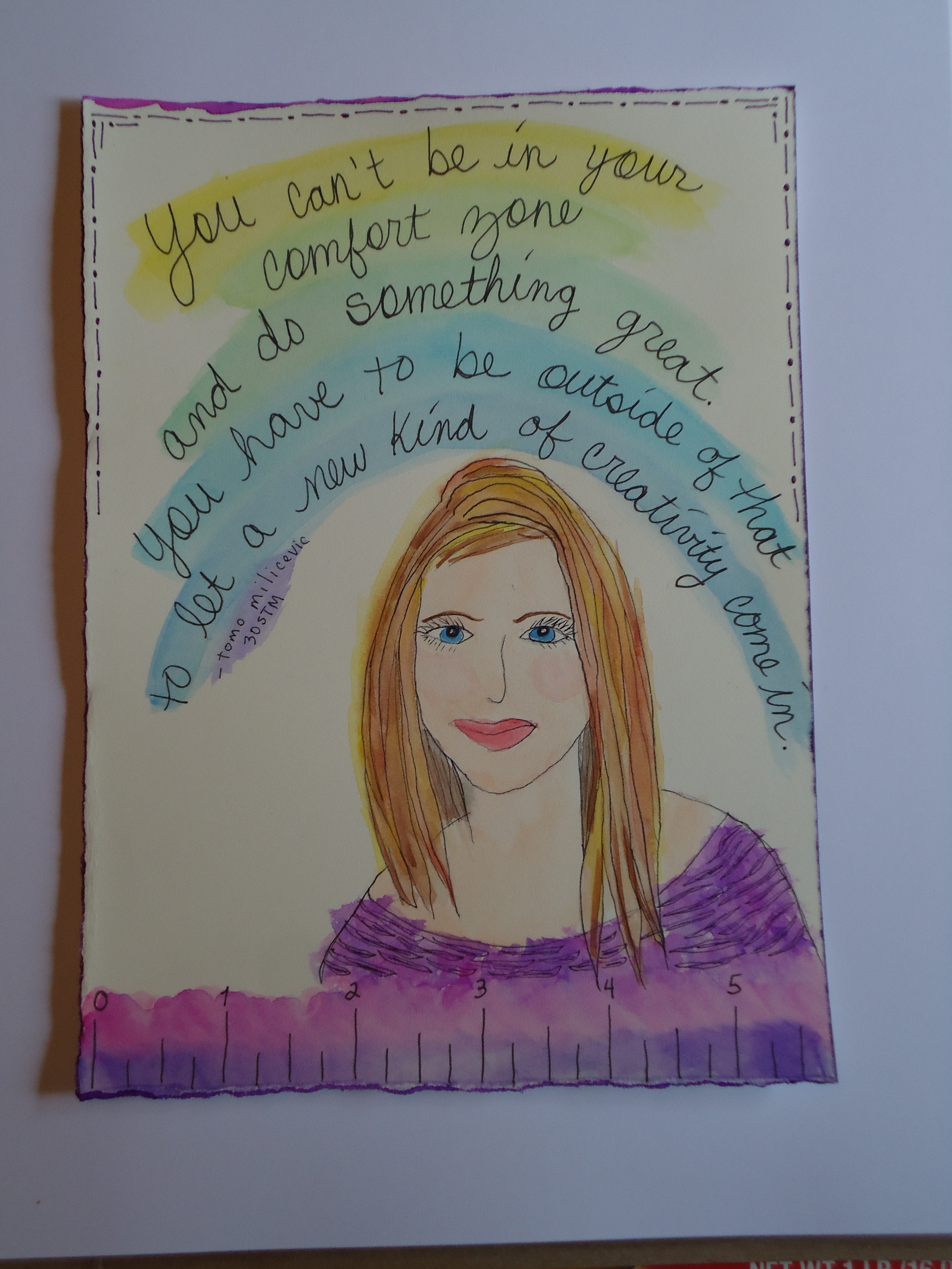 I have always wanted to do a self portrait, which is actually quite hard – hard to draw yourself and then to include those little details you might not like but still make you You. I chose to include a self portrait form of illustration with this next quote because it can be hard to change yourself, change the way you do things, and to stop measuring yourself.