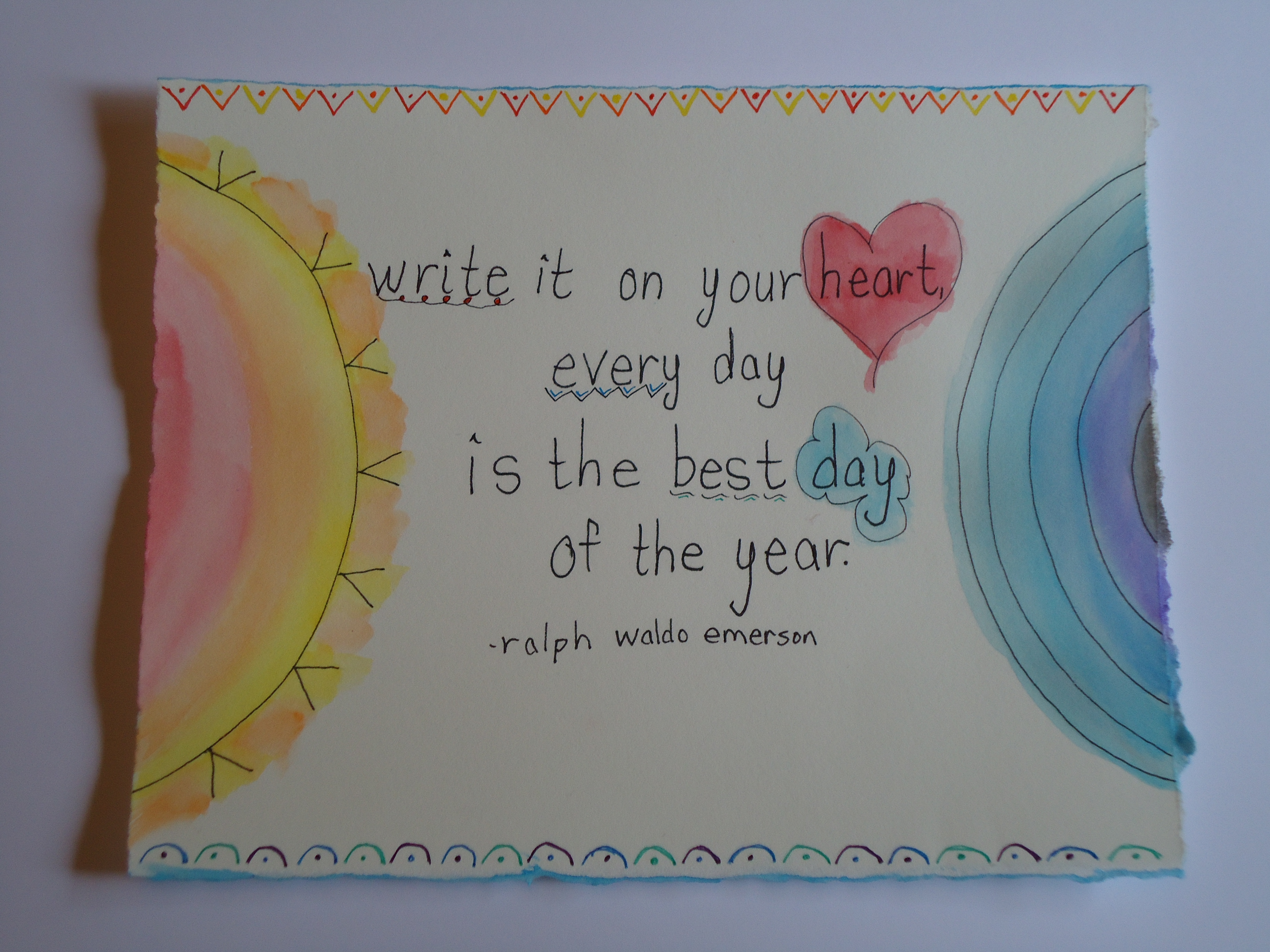 I have an entire sheet of favorites quotes I love by Ralph Waldo Emerson, so that’s what I started with. Instead of illustrating the actual lettering, I wanted to connect my illustrations with the quote in subtle ways, and just use my own handwriting.