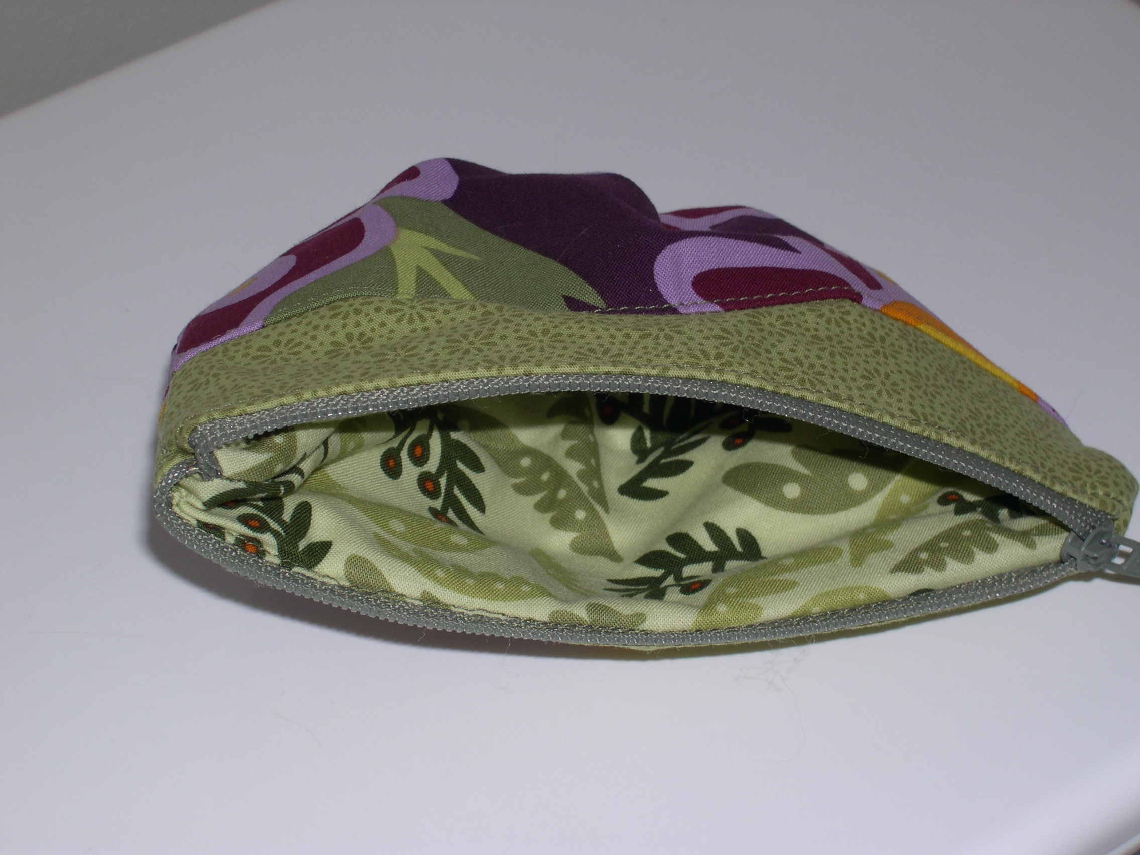 After some time has passed of NOT using this bag, I decided I didn’t like the handle. It just seemed too stiff and too big to use this one as a makeup bag. But I liked how the pleats turned out on this larger bag. Here’s a peak at the lining: